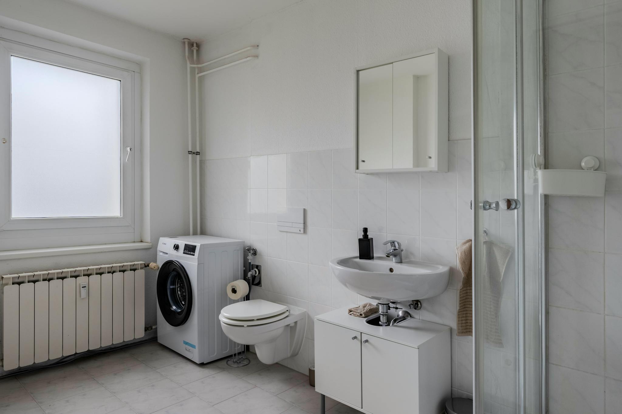 The monthly rent price is all inclusive (rent + heating + water + Internet + GEZ/german TV license fee).