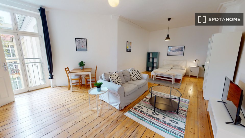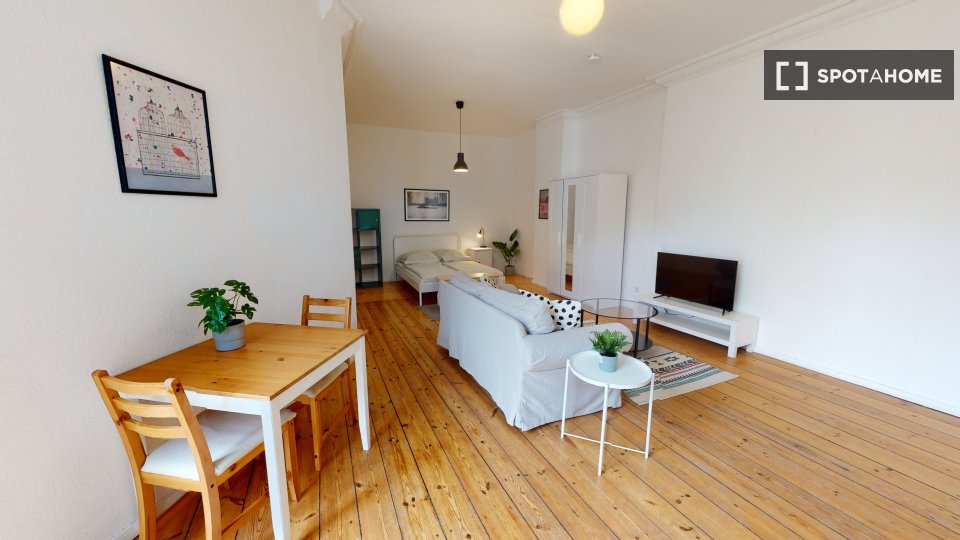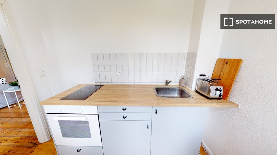 Pets not allowedNot allowedSpotahome presents a fully furnished studio in Berlin, perfect for professionals, students, or couples. All bills (water, electricity, gas, wifi) are included, offers a modern, functional, and cozy living experience. The studio is equipped with private amenities like a washing machine and an oven, and it features an equipped kitchen. Spotahome has personally verified the property, ensuring a smooth and secure renting process.
