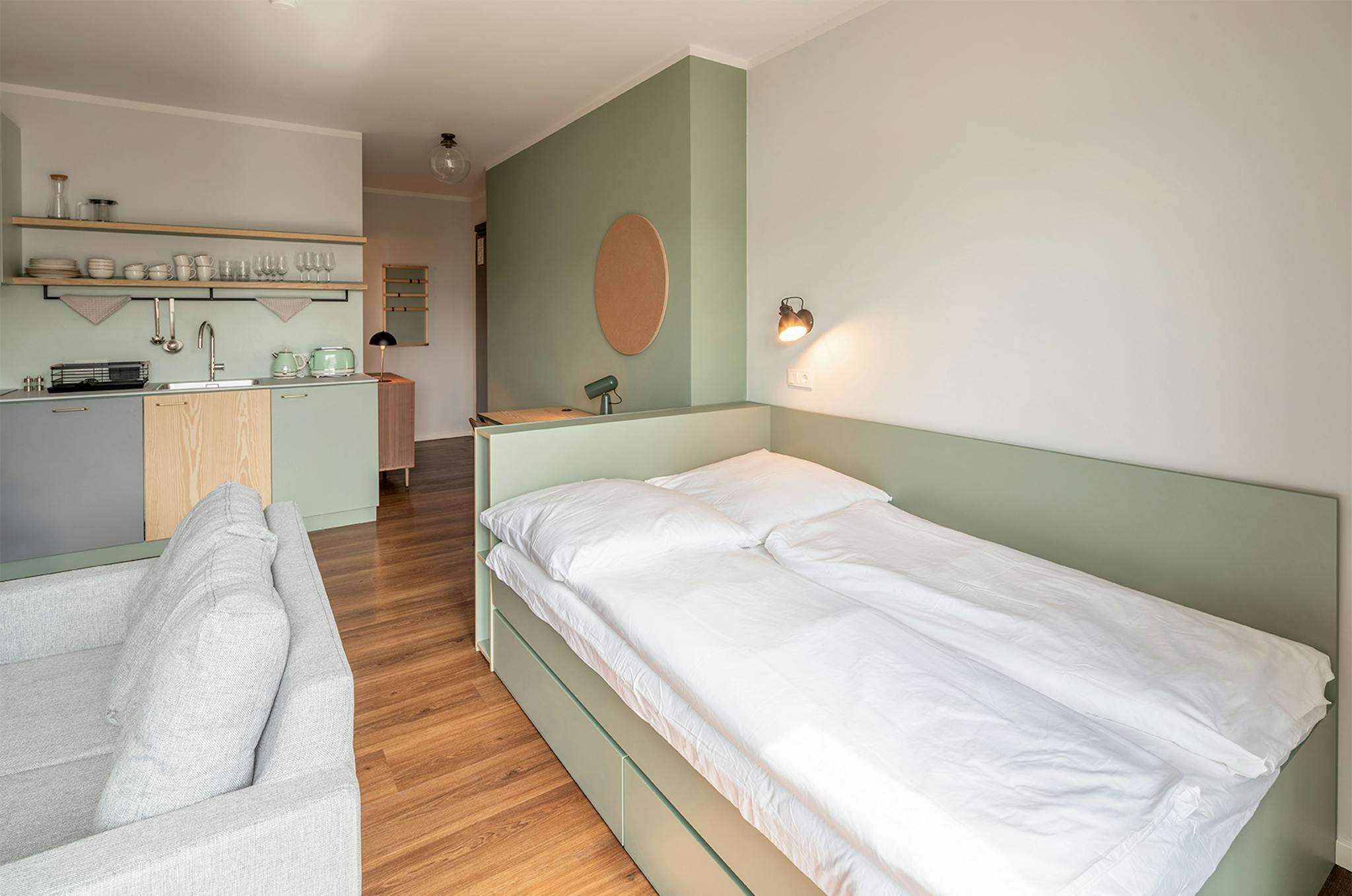 In Neukölln, we offer Single Studio and Apartments with up to 2 bedrooms for smaller families.