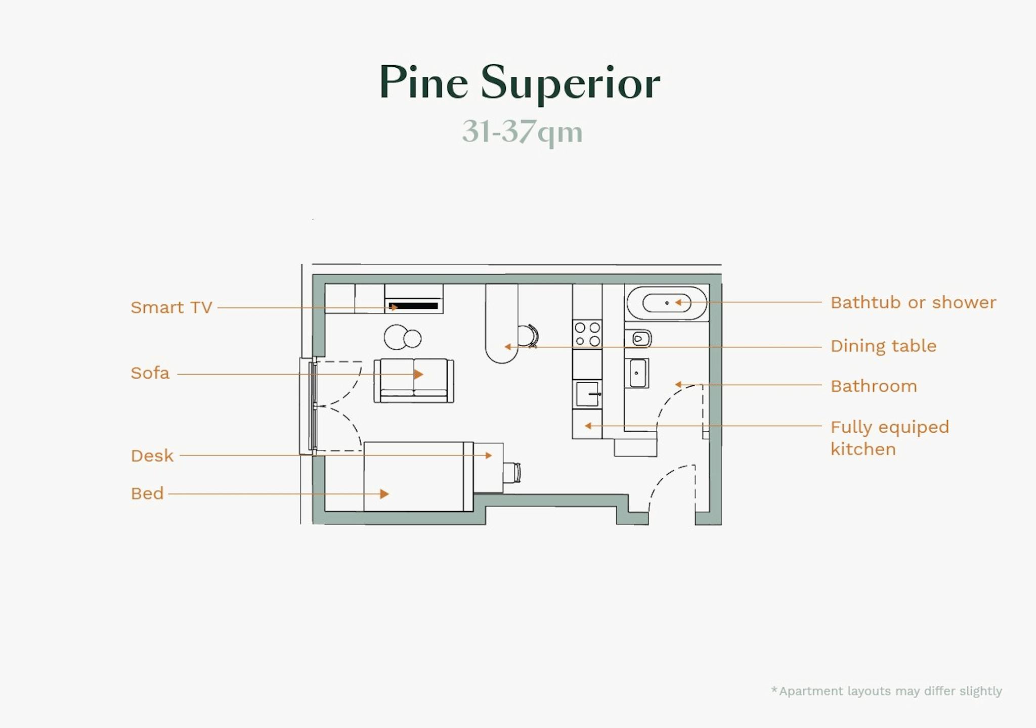 Discover a comfortable & furnished flat for your stay at our Apartment. With apartment sizes ranges from 31 to 37 square meters, tailor-made and optimized to the floor plan, your feeling of well-being comes out big. With a cozy open living and sleeping area as well as an open kitchen, our Apartments invite you to feel at home immediately. Take one with a balcony for relaxing with the 1st coffee in your hand to start an exciting new day or a last sip of wine at sunset and complete your living experience here with us.
