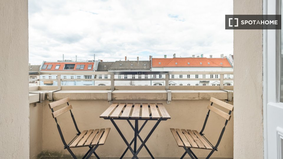 Furnished apartment with 2 bedrooms for rent on Stargarder Str. The property is on the 1st floor. The property includes balcony.