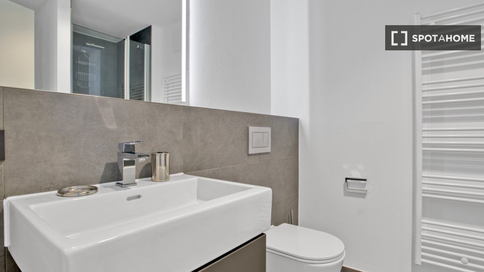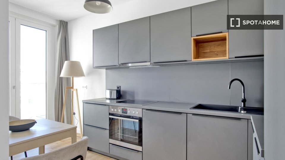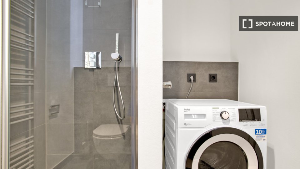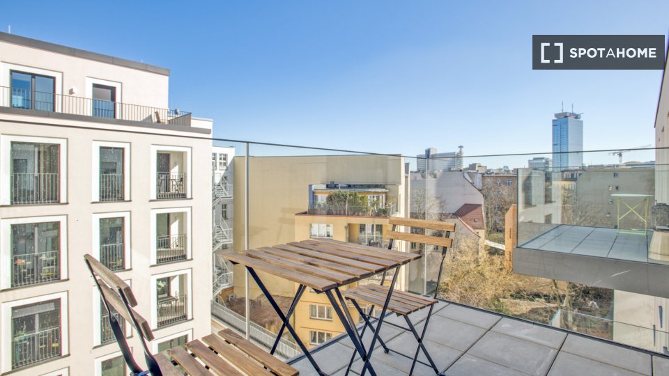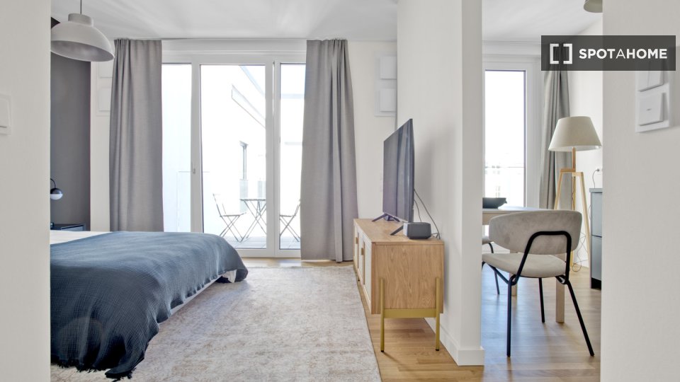 Pets allowedAllowedFurnished studio apartment for rent on Rosenthaler Str.. The property is on the 5th floor of a building with an elevator. The property includes equipped kitchen, balcony, washing machine, and dryer.