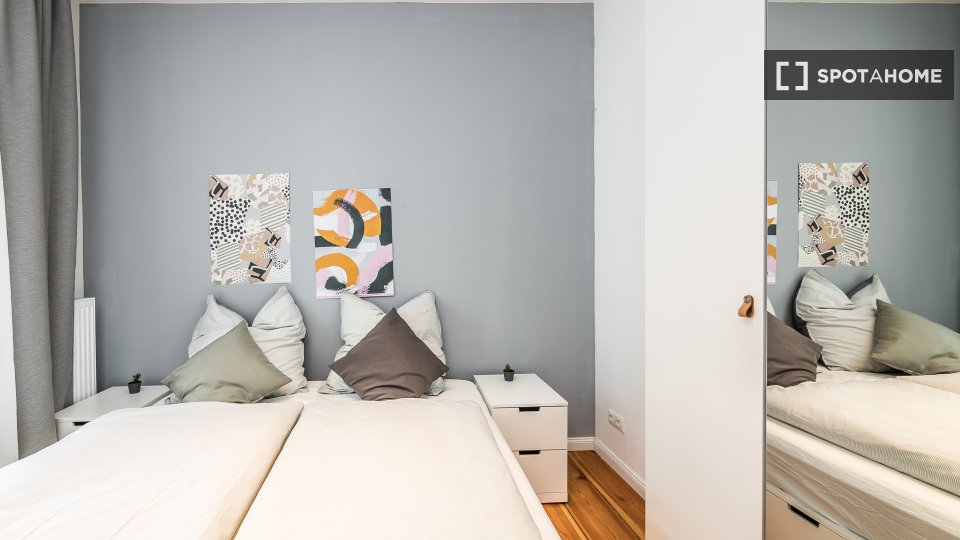 Located in the sought-after Friedrichshain-Kreuzberg district, this residence boasts proximity to various attractions. Renowned dining spots such as Stock & Stein and Aleppo Supper Club are within walking distance, alongside captivating landmarks like the Berlin Sculpture Atelier and the Pinguin Brunnen. Explore the lively Simon-Dach-Straße or dive into unique exhibitions like the C2C-Ausstellung 'Kreis Statt Krise'. This location is not only central but bustling with cultural and social opportunities, promising the ultimate Berlin experience.