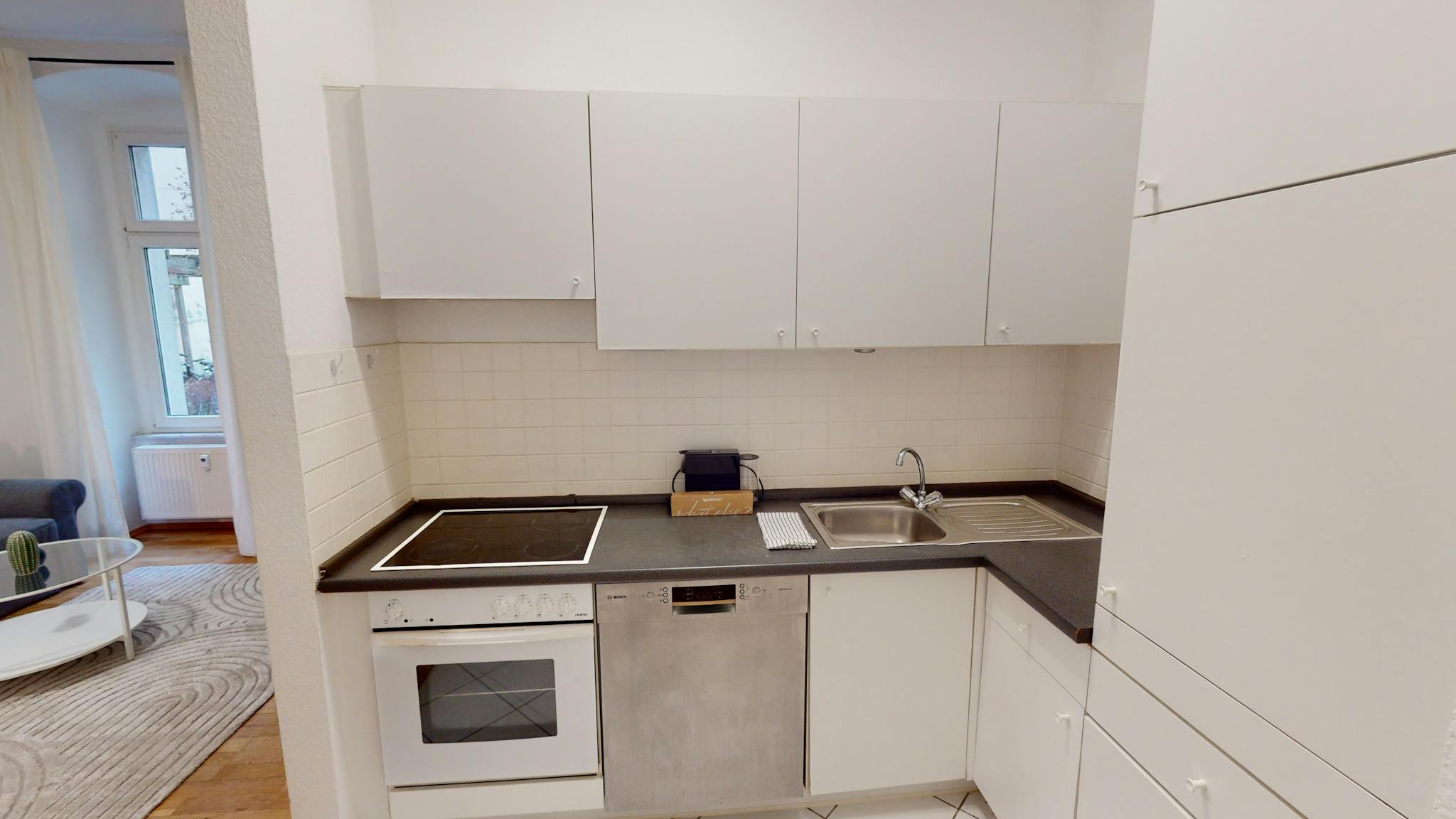 This fully furnished, fully equipped apartment is perfect for singles or couples who are looking for a high quality of life right in the centre of Berlin. The small additional half room can be used as a storage space or a home office.