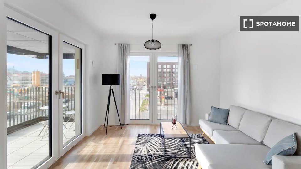 The beautifully designed and elegantly furnished apartments are part of the project: Wasserstadt Mitte Apartments.