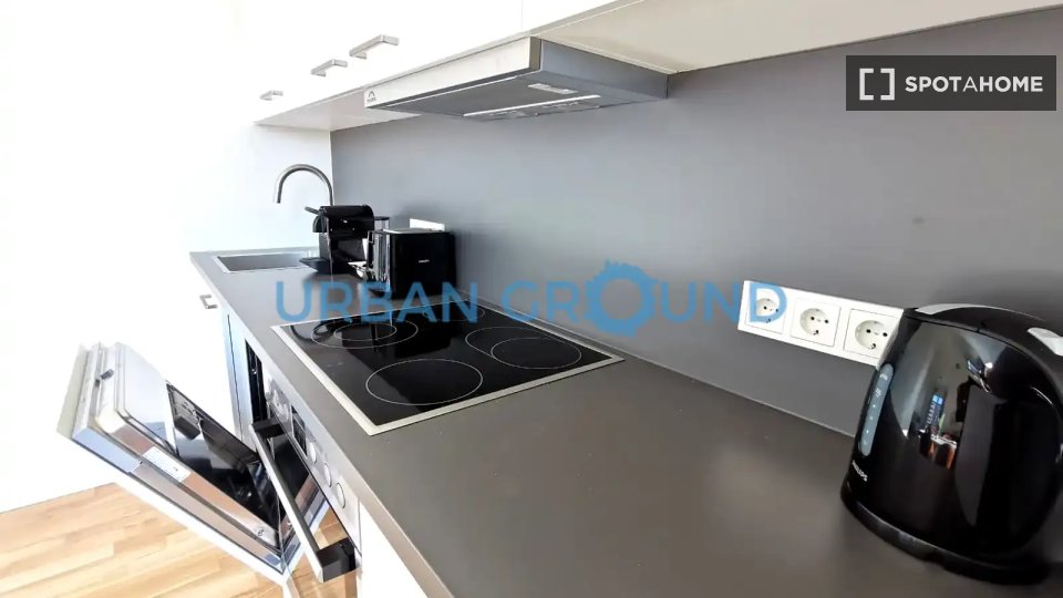 - Open kitchen area: tasteful fitted kitchen equipped with ceramic hob, extractor hood, sink, dishwasher, refrigerator, oven.
