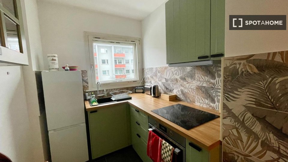 Pets not allowedNot allowedThis well-furnished 1-bedroom apartment is available for rent in Berlin. Couples are welcome, and this pet-free and smoke-free property is perfect for a cozy living experience. The kitchen comes equipped with modern appliances including a washing machine, dryer, and oven, making it convenient for meal preparation and laundry. The apartment also features central heating and a balcony for pleasant outdoor moments. Bills for electricity, water, gas, and Wi-Fi are included for added convenience.