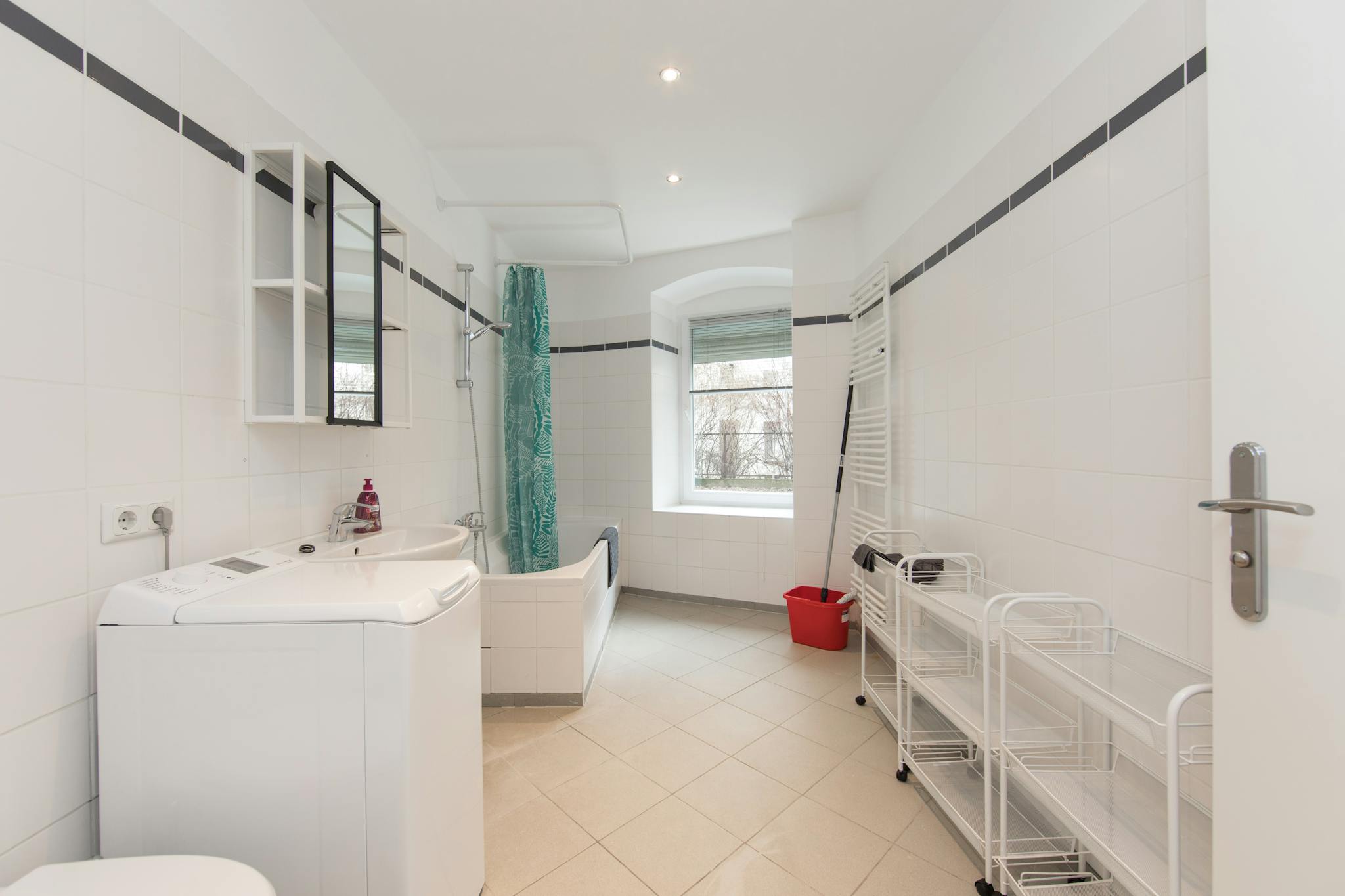 The apartment includes shared access to the kitchen and bathroom, which are fully equipped with all essentials, including kitchen supplies and a washing machine.