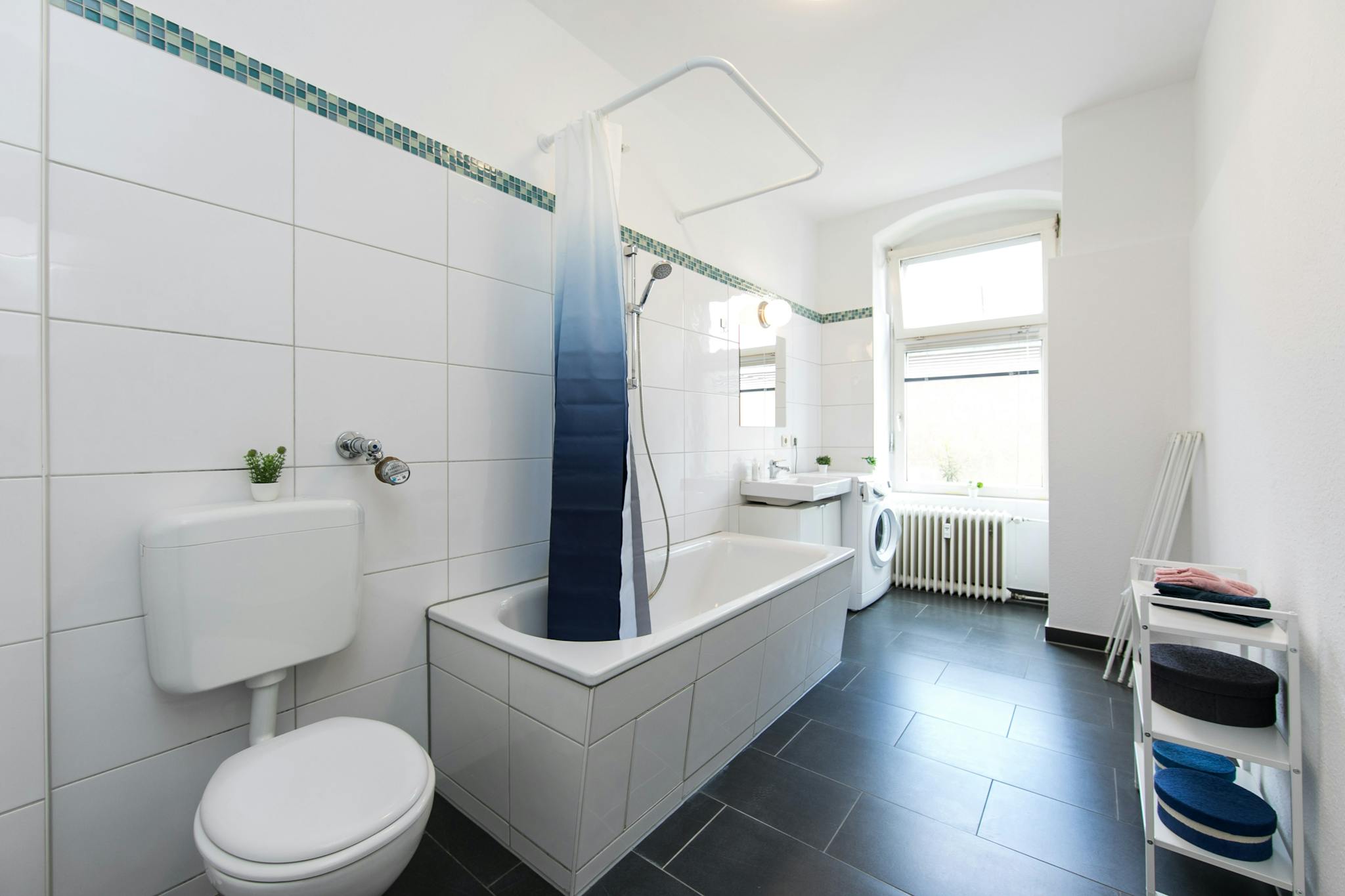 The monthly rent price is all inclusive (rent + heating + water + Internet + GEZ/german TV license fee).