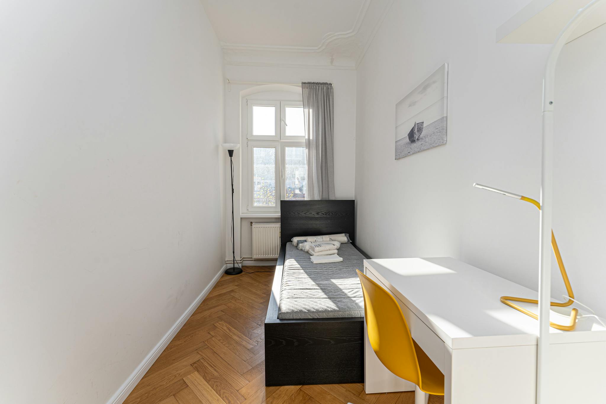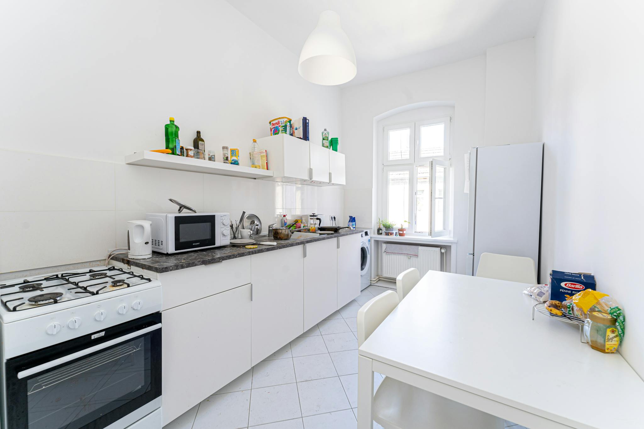 This beautifully modernized, fully furnished shared apartment 80 qm is located on the 4th floor and features high ceilings, wooden flooring, and a bright, welcoming atmosphere. It’s hard to find a more central and exciting location!