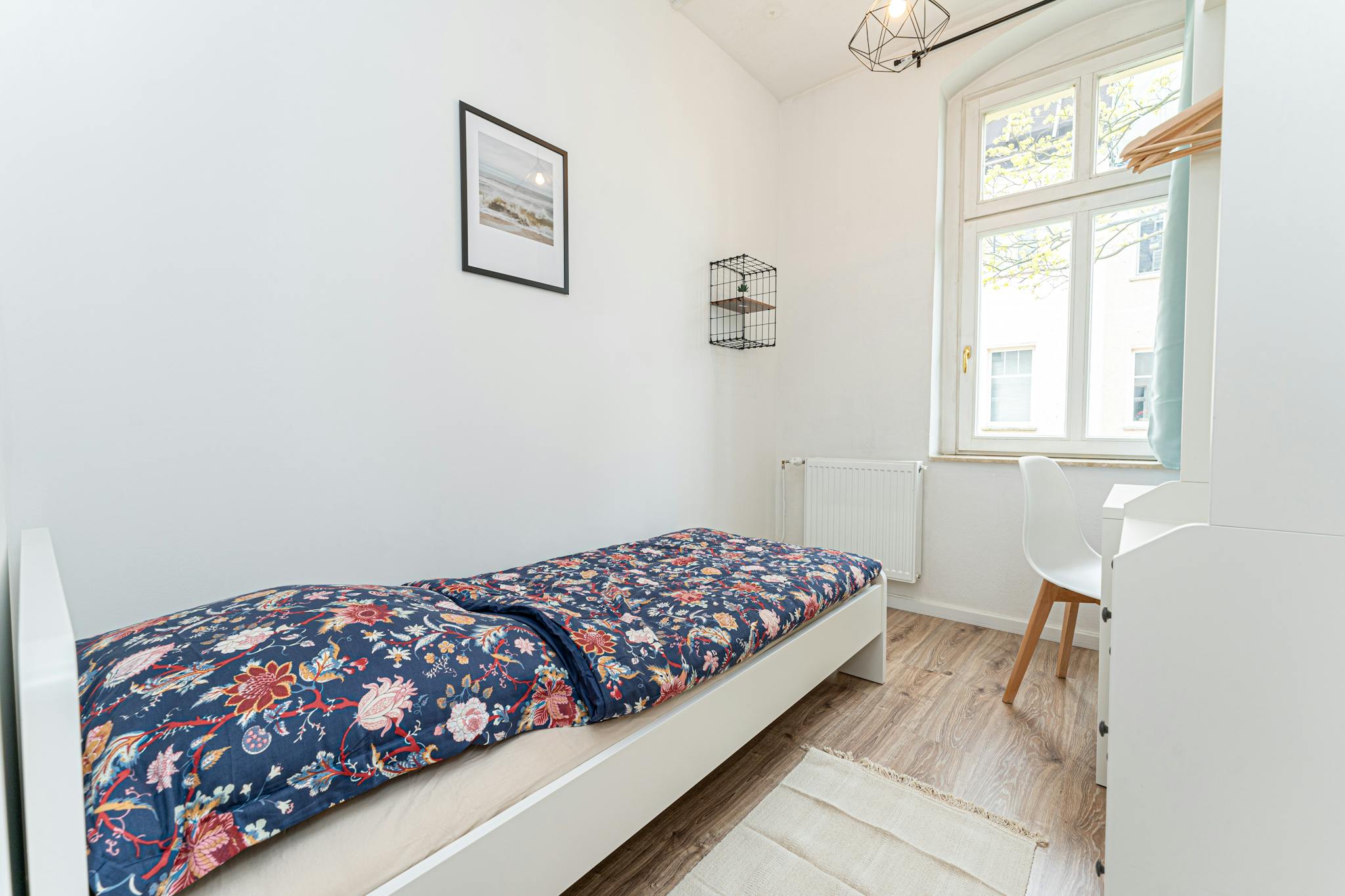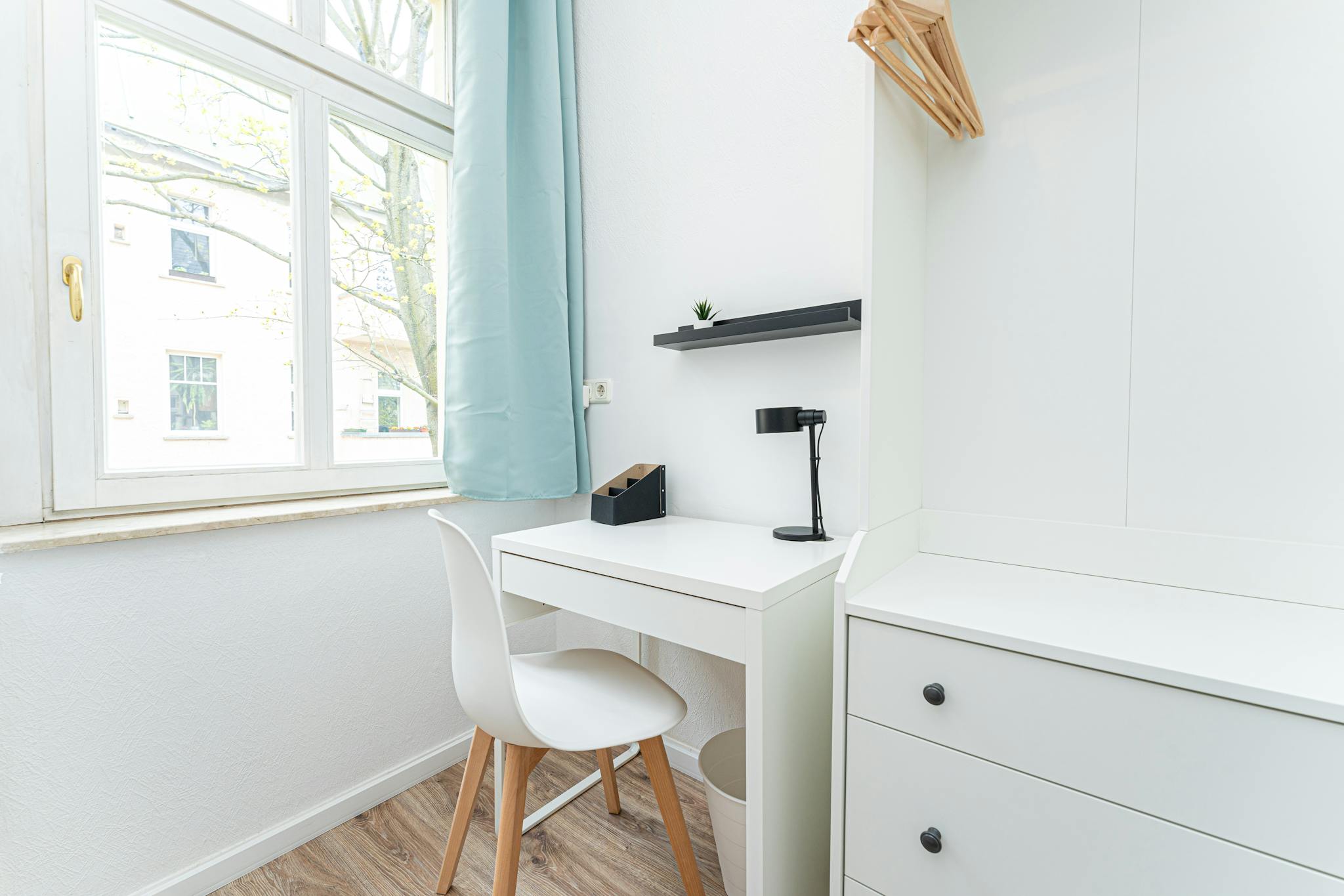 this is a fully furnished room in a shared flat. The room has a comfortable bed, a desk with chair and a wardrobe for your clothes. Also the common areas are fully equipped with washing machine, cooking equipment and all you need for your daily living.
