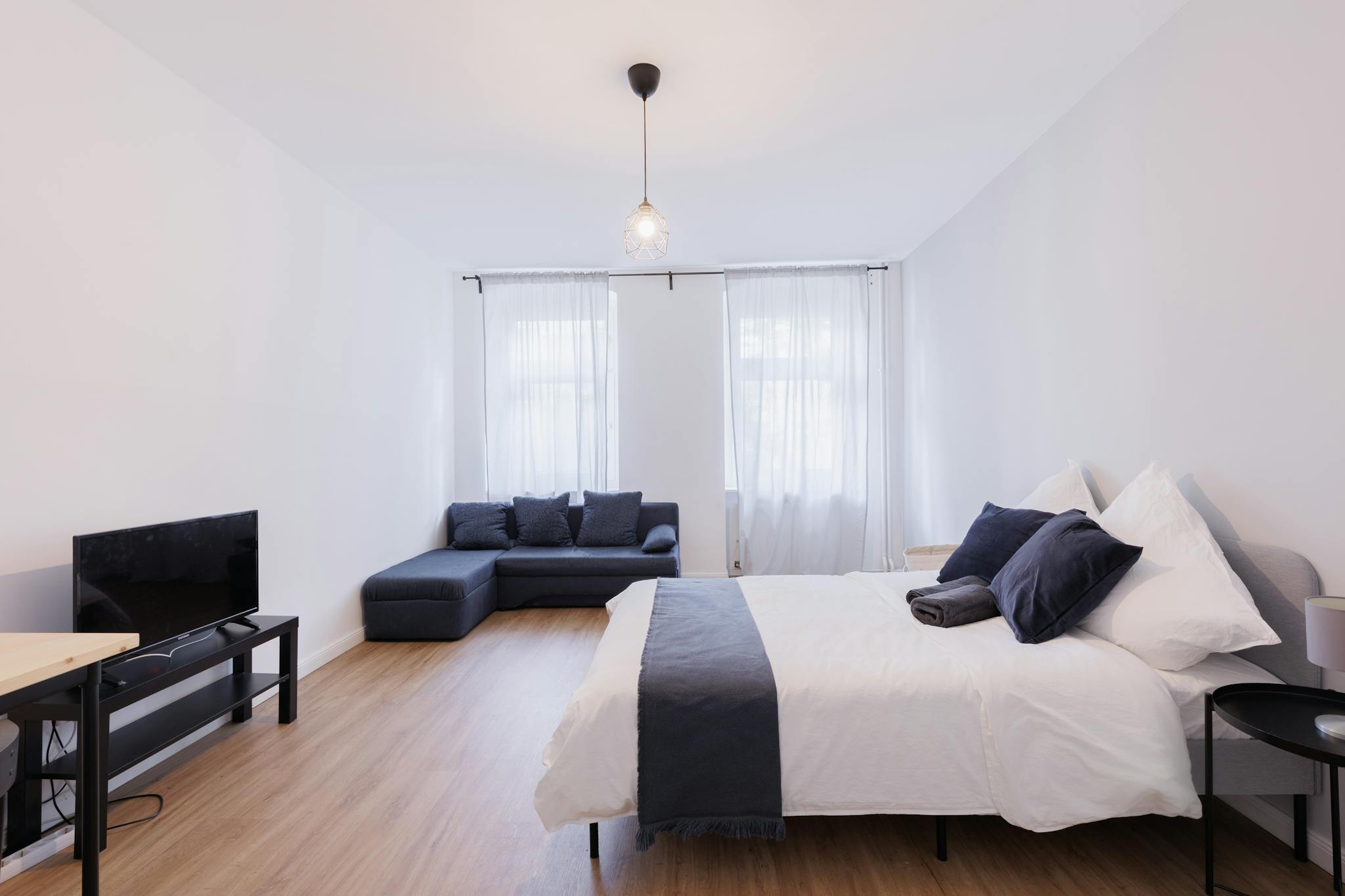The apartment is designed in a modern style with spacious rooms and a great kitchen. All costs are included in the rent, including bills, internet, and more!