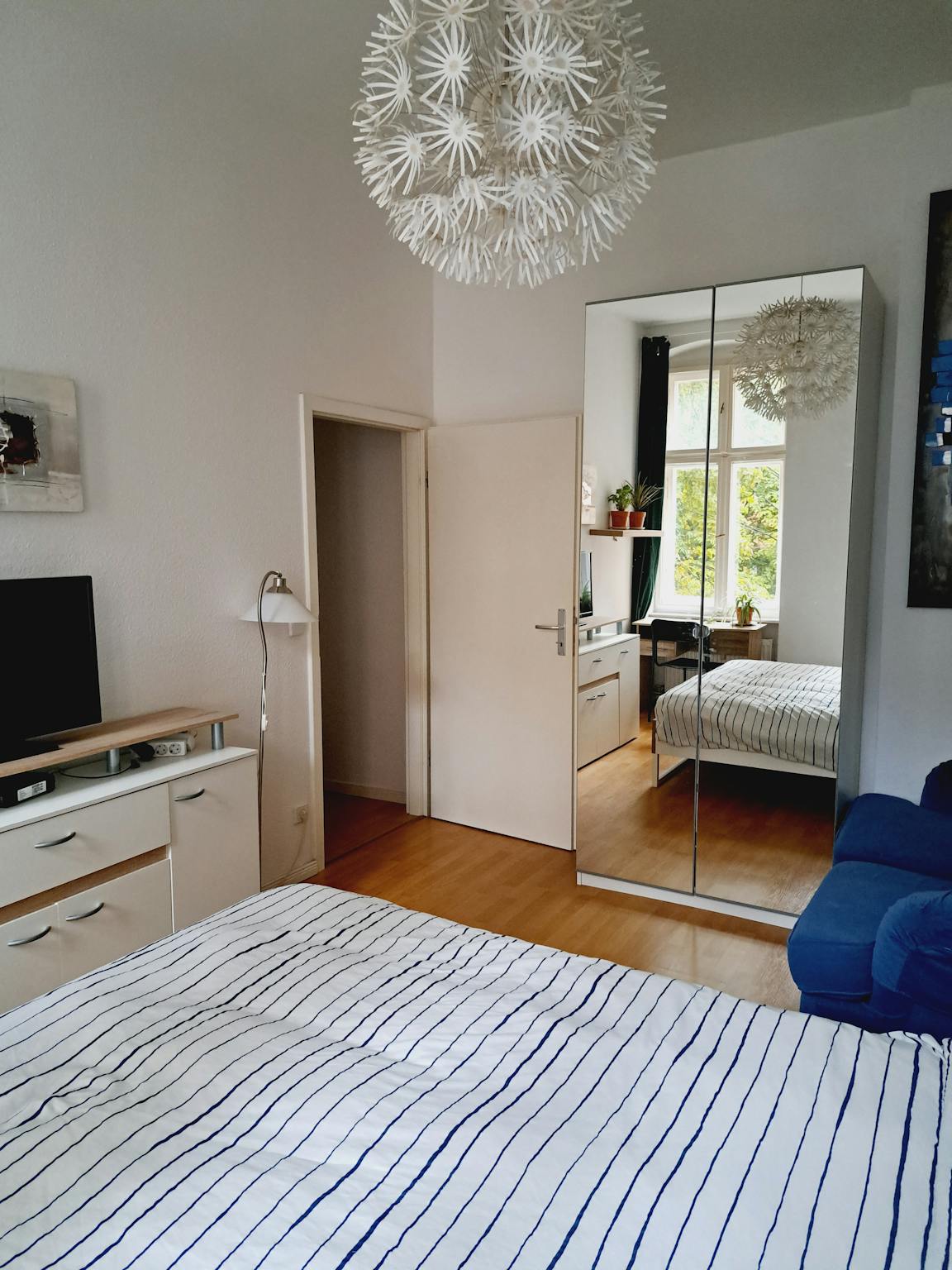 The apartment is situated in Wedding, a neighborhood that is part of the Berlin Mitte district. Nearby, you will find many shopping centers, small shops, bars, and convenience stores that are open around the clock. The Volkspark Rehberge, one of Berlin’s most beautiful and popular parks, is also within close walking distance.