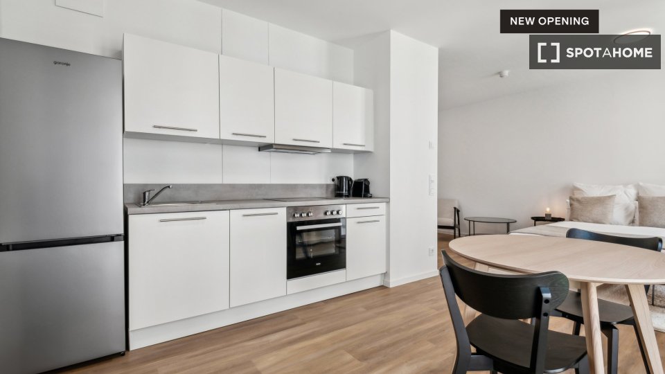 Pets not allowedNot allowedWelcome to this stylish studio for rent in Berlin. This property comes with convenient amenities like an elevator for easy mobility, a balcony to enjoy some fresh air, an equipped kitchen for preparing meals, and a TV for entertainment. You'll also appreciate the included WiFi, making connectivity hassle-free. Couples are welcome to make this cozy space their new home. Checked personally by Spotahome, ensuring quality and transparency.
