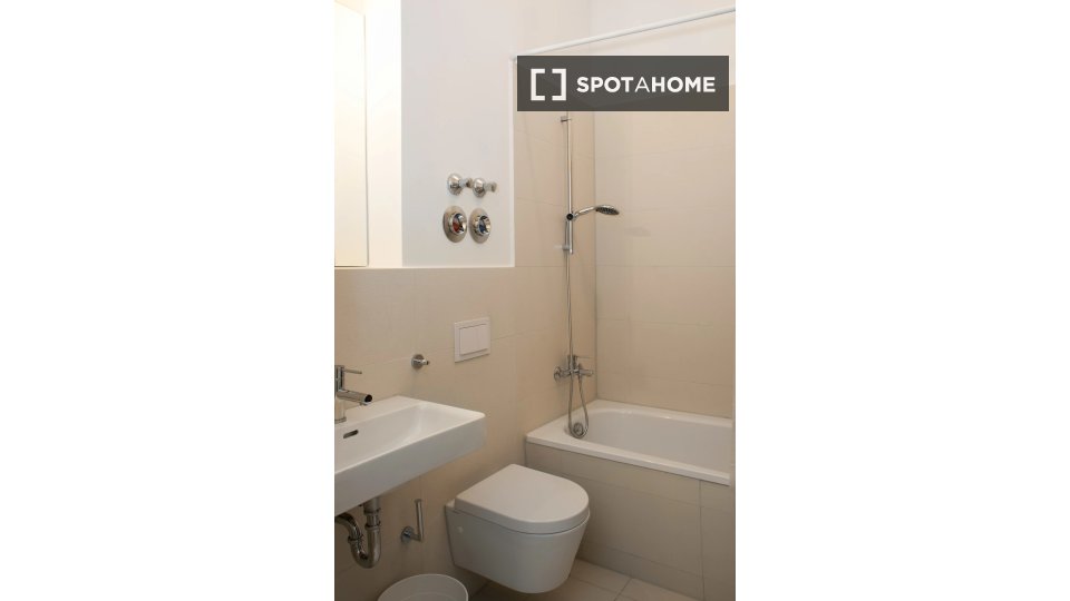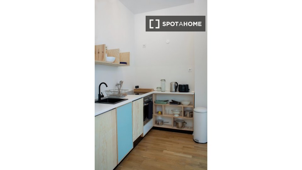 Pets allowedAllowedThis charming studio located in Berlin is fully equipped and furnished, providing everything you need for a comfortable stay. The property includes an equipped kitchen with an oven and has common laundry facilities, featuring both a washing machine and dryer. Bills for electricity, water, gas, and WiFi are included, ensuring a hassle-free experience. It is open to professionals, students, and couples without any restrictions. Although not personally verified by Spotahome, all listed properties undergo thorough screening for your safety and convenience.