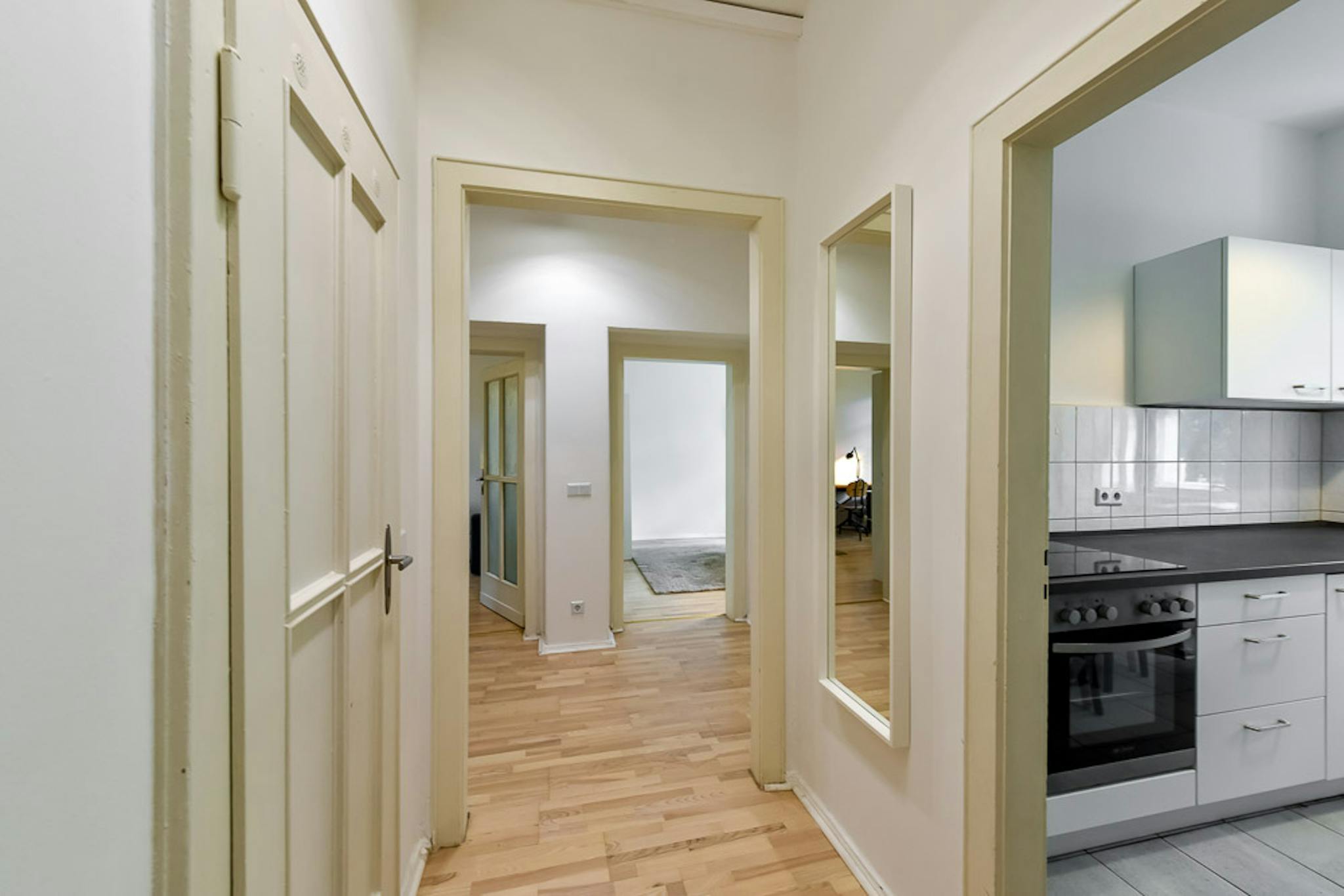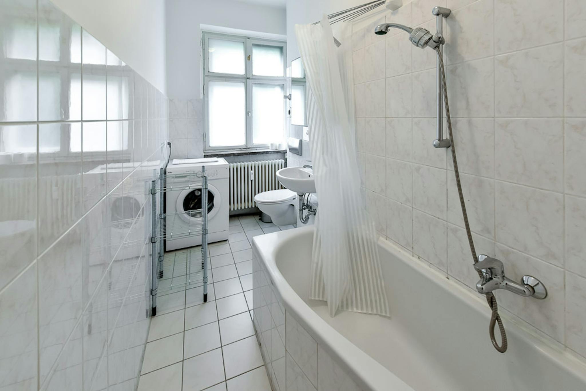 Only 3 minutes walk from the S-/U-Bahn station Weberwiese and Frankfurter Tor (U5), and around 8 minutes walk to the S-Bahn station Warschauer Straße (S3, S5, S7, S9, U3, U1) making it easy to get to any other vibrant area in Berlin within a short amount of time.