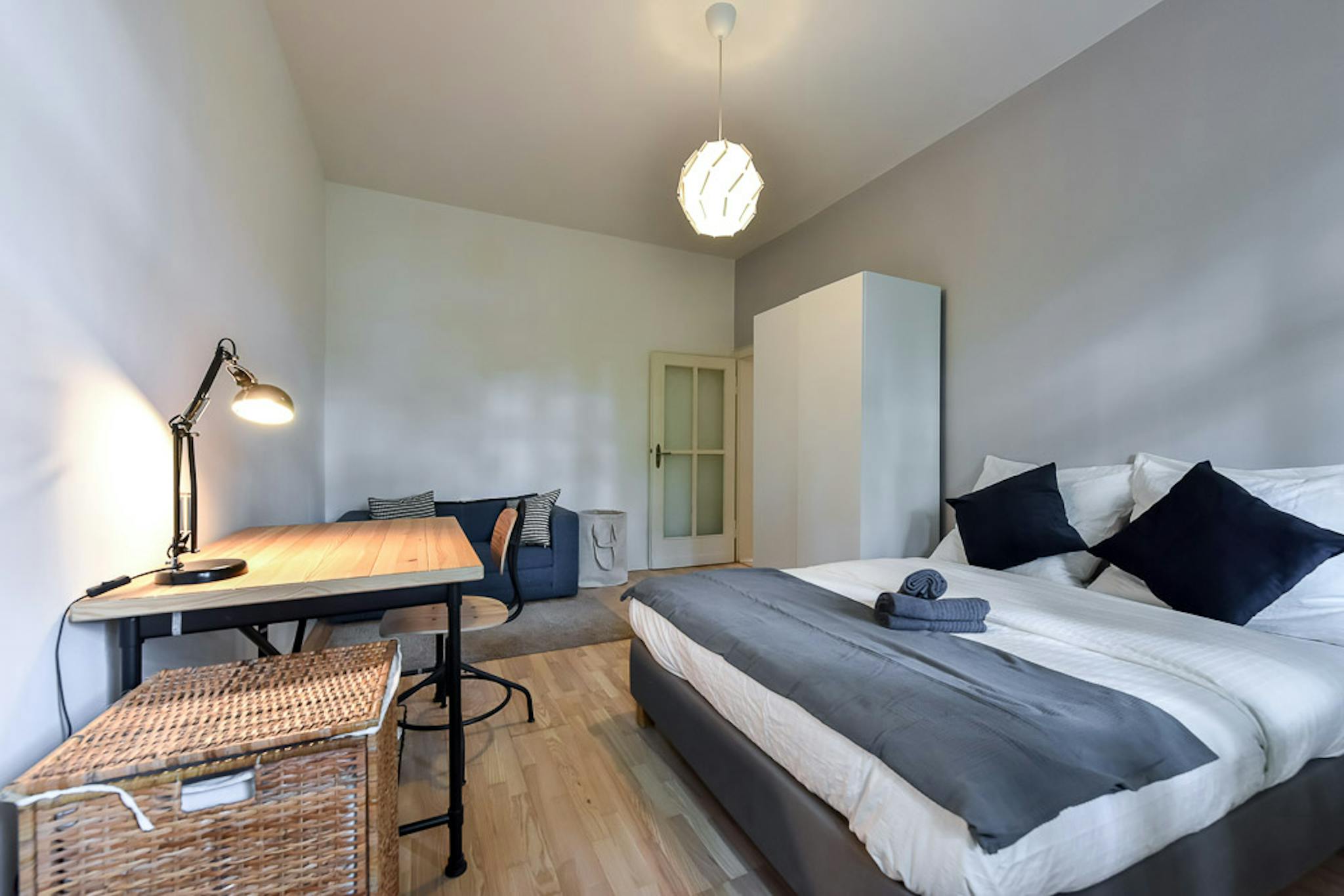 The apartment is designed in a modern style with spacious rooms and a great kitchen. All costs are included in the rent, including bills, internet, and more.