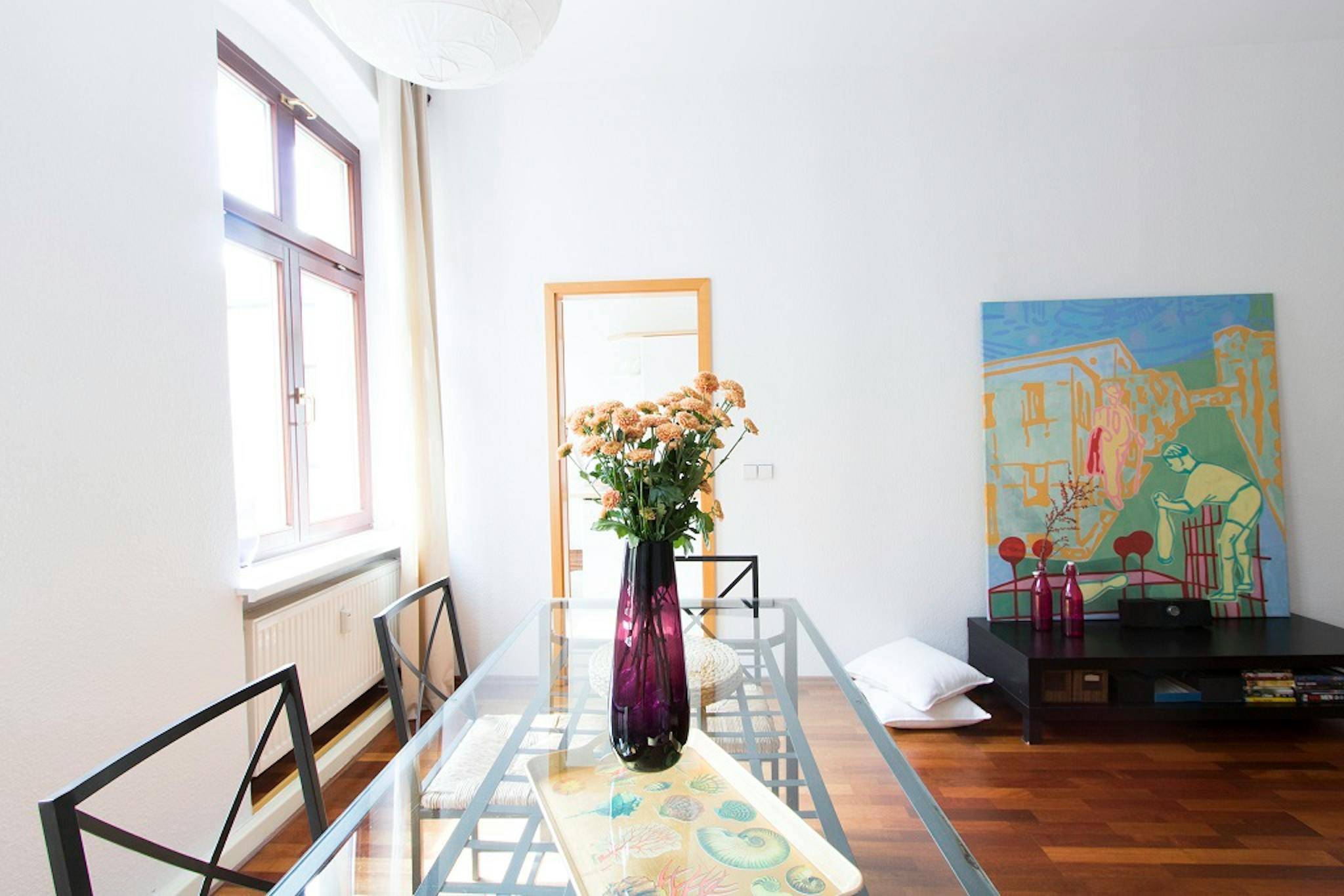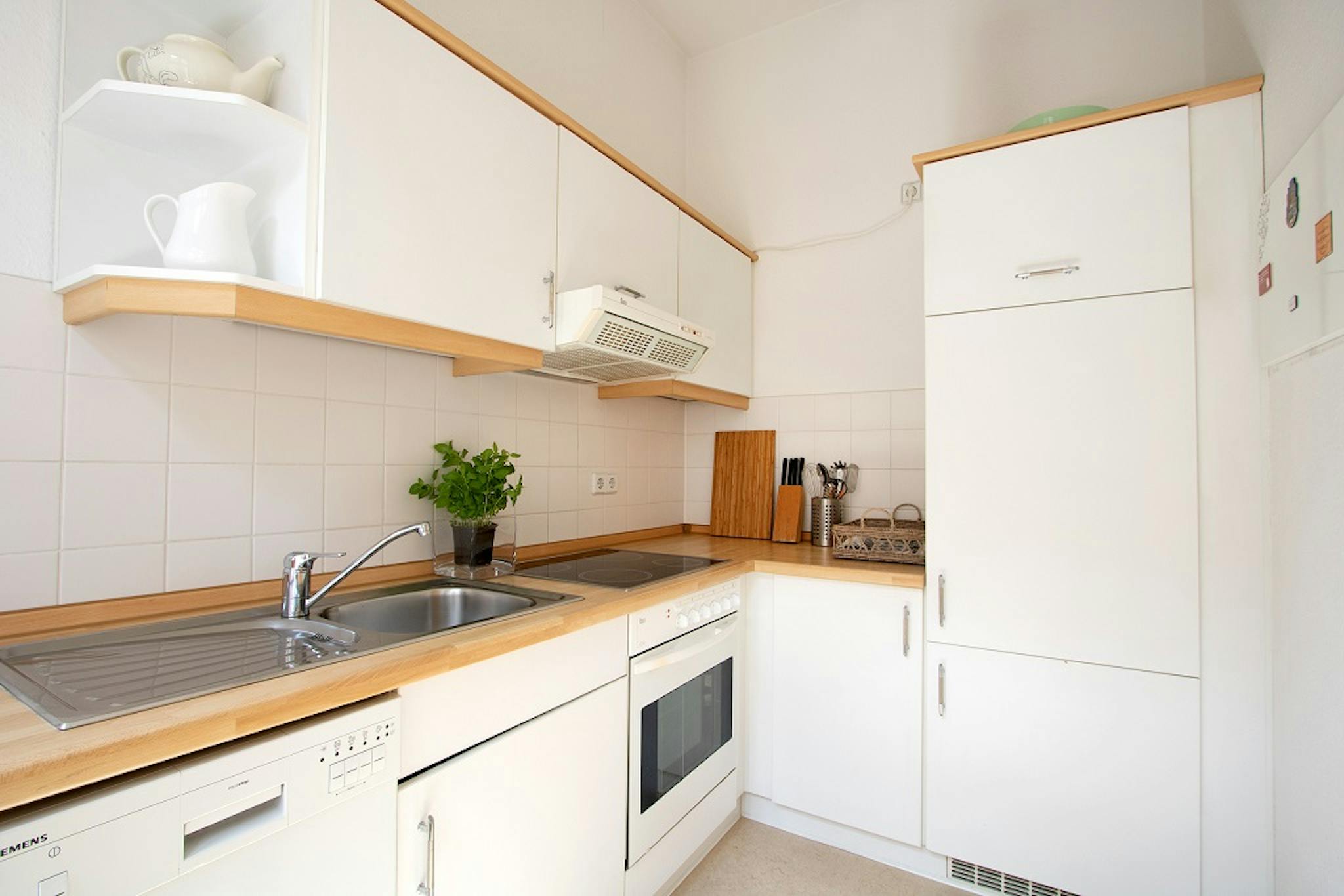 Non-SmokingNot allowedThe cozy 2 room apartment in located in the third floor of a modern building with lift and is ideal for a couple. Next to the bedroom with the comfortable queen size bed there is a fully equipped kitchen and an extra bathroom with bathtub. Electronic devices like wifi connection, flatscreen TV, dish washer and washing machine make you feel at home in Berlin immediately.