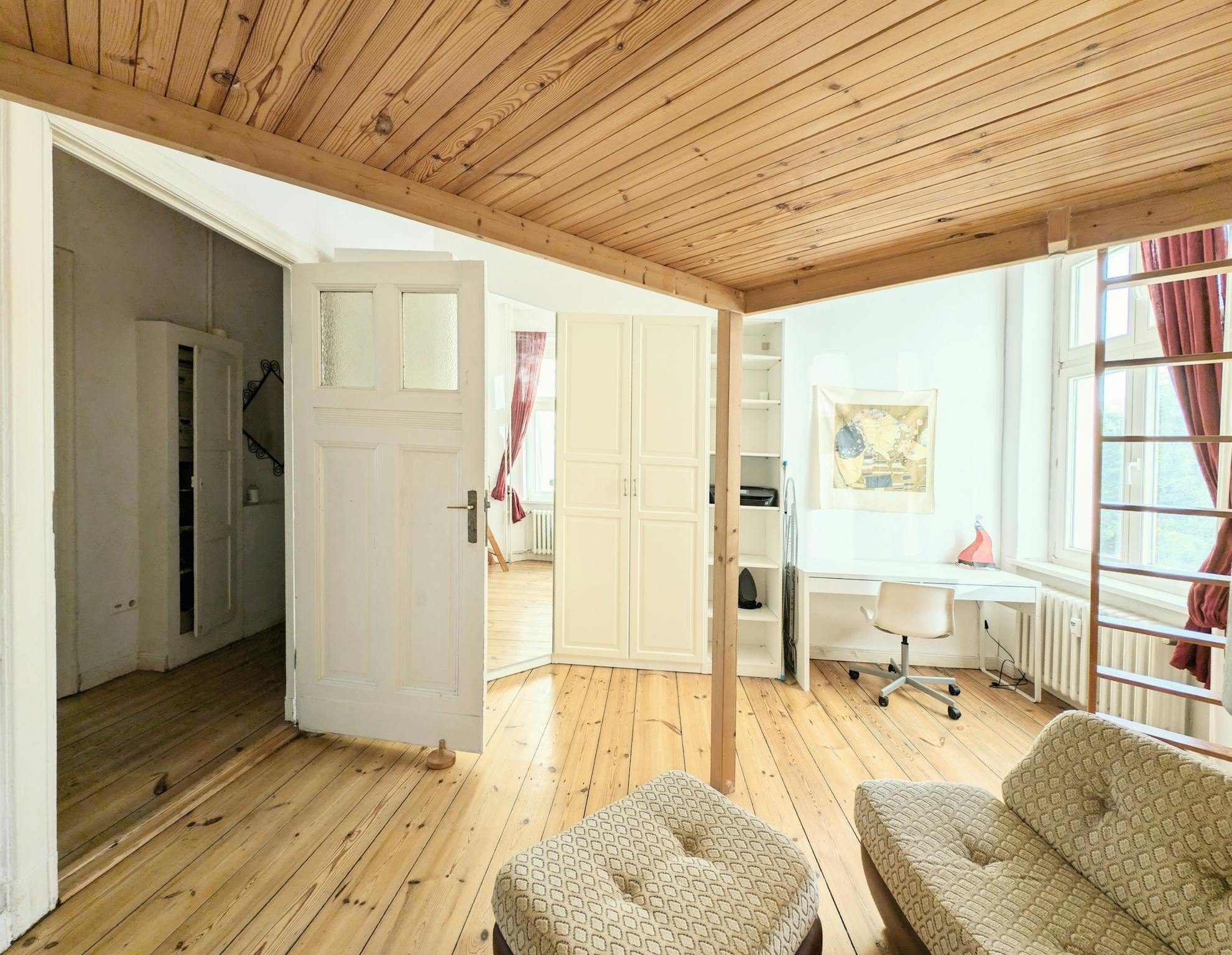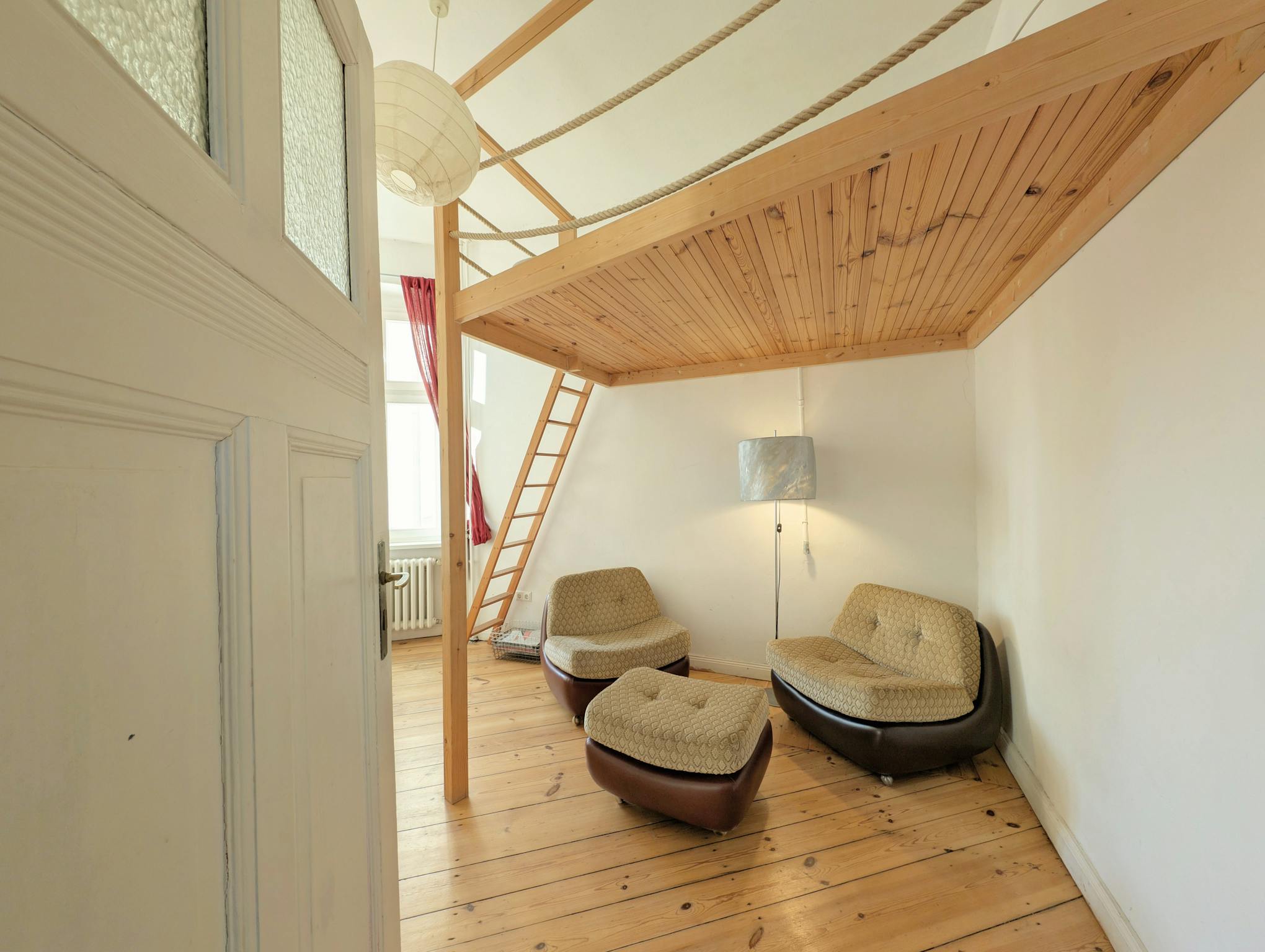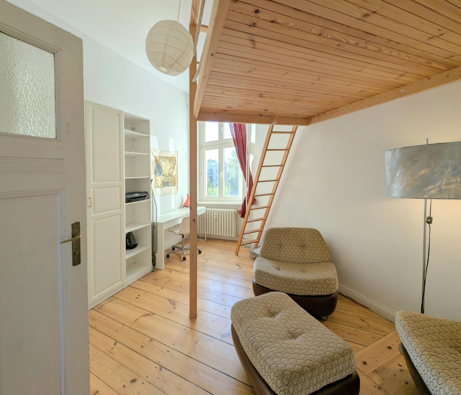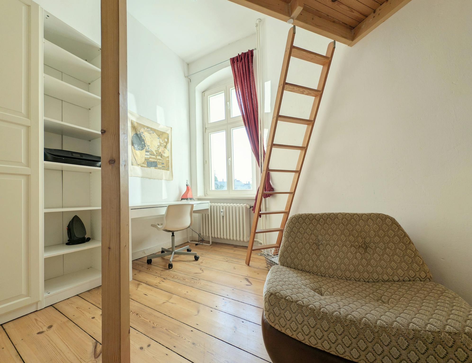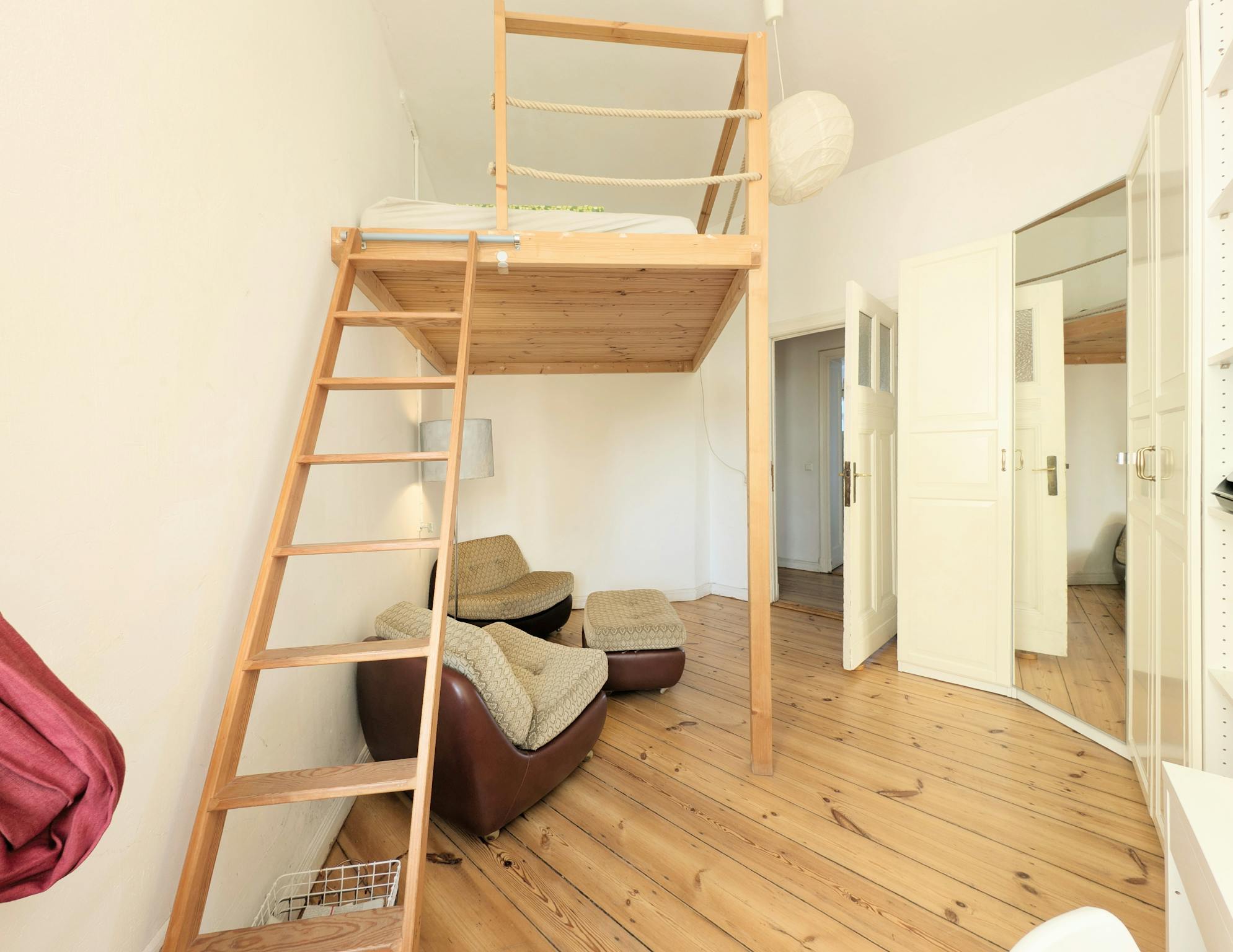 The apartment is furnished and decorated with taste and plenty of nice details, fitted with parquet flooring using genuine wood; there is a modern fitted kitchen and a splendid view into the canal area of Kreuzberg. The mezzanine serves as a sleeping area with much comfort and relaxation. The washing machine is available in the bathroom. Enjoy your stay here 😊