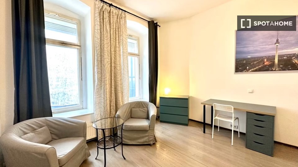 Pets not allowedNot allowedThis charming and fully furnished studio is available for rent in Berlin. The property features central heating to keep the indoor environment cozy and comfortable. The kitchen is equipped, making meal preparations straightforward. All bills (electricity, water, gas, and wifi) are included, simplifying your living experience.