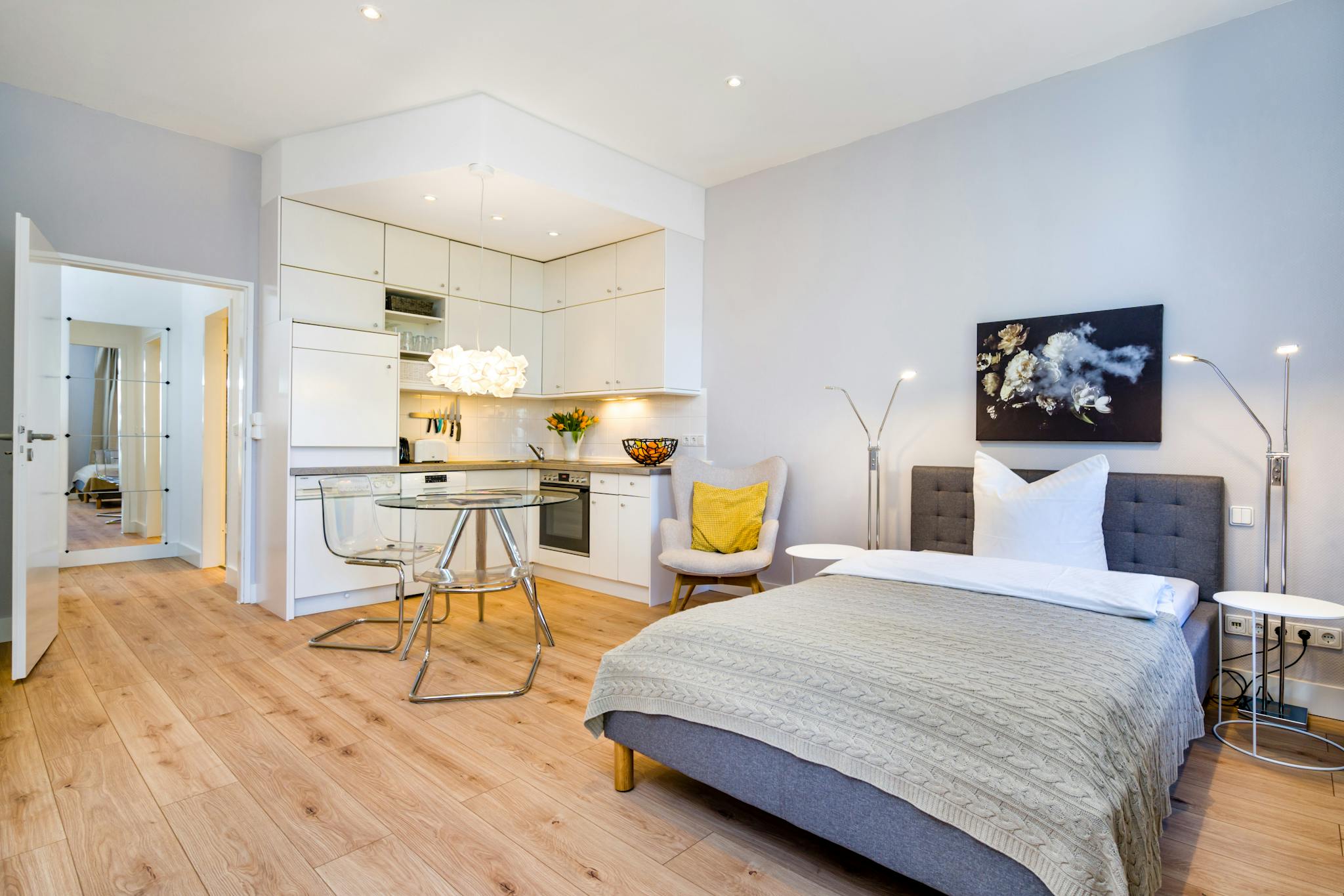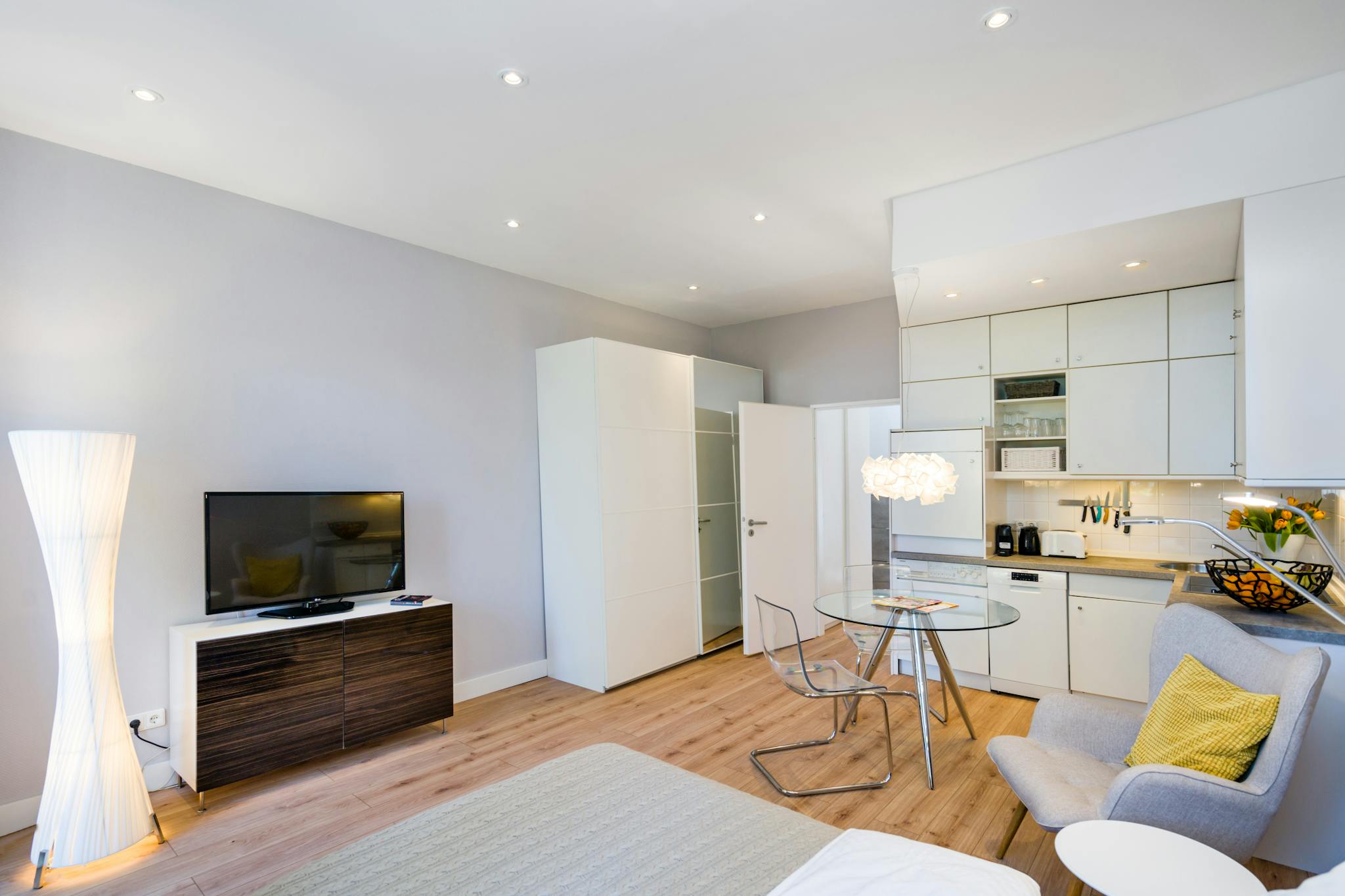 The rent includes also GEZ-fee, free WiFi, a cleaning of the apartment once a month, concierge service and all other costs. Only the electricity costs are charged separately all 3 month on personal consumption.