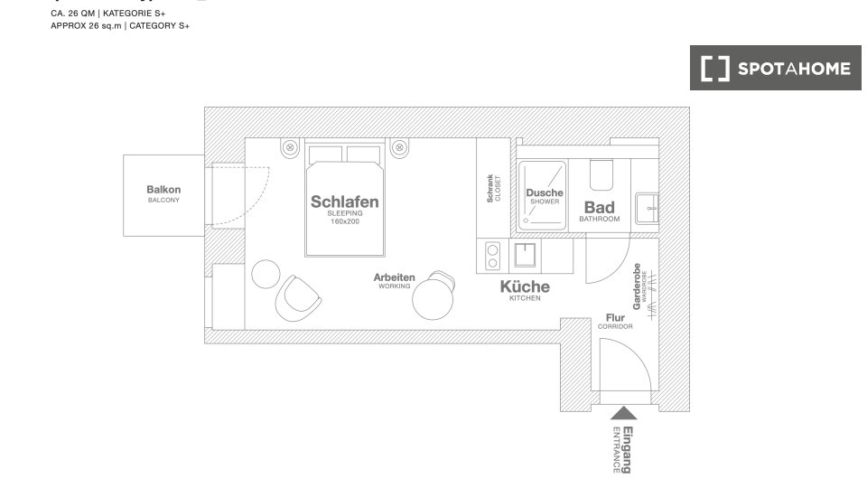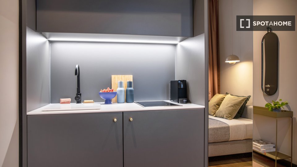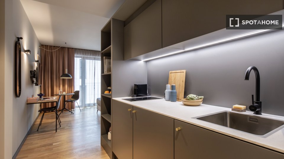 Pets not allowedNot allowedDiscover this charming studio located in Berlin. Fully furnished and featuring central heating, the property includes a balcony for outdoor relaxation. The kitchen is equipped with essential facilities, making it ideal for comfortable living. Bills, inclusive of electricity, water, gas, and WiFi, are covered, making it a budget-friendly option.