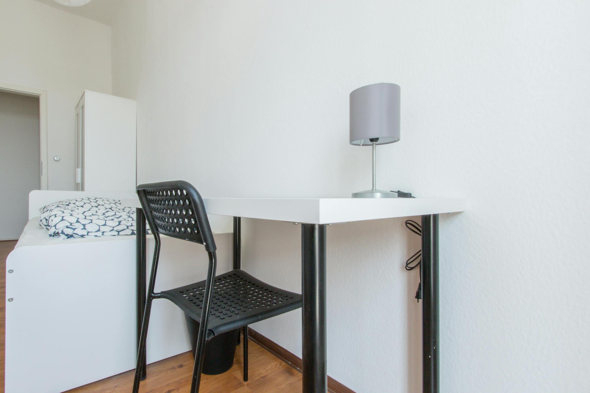 this is a fully furnished room in a shared flat. The room has a comfortable bed, a desk with chair and a wardrobe for your clothes. Also the common areas are fully equipped with washing machine, cooking equipment and all you need for your daily living.