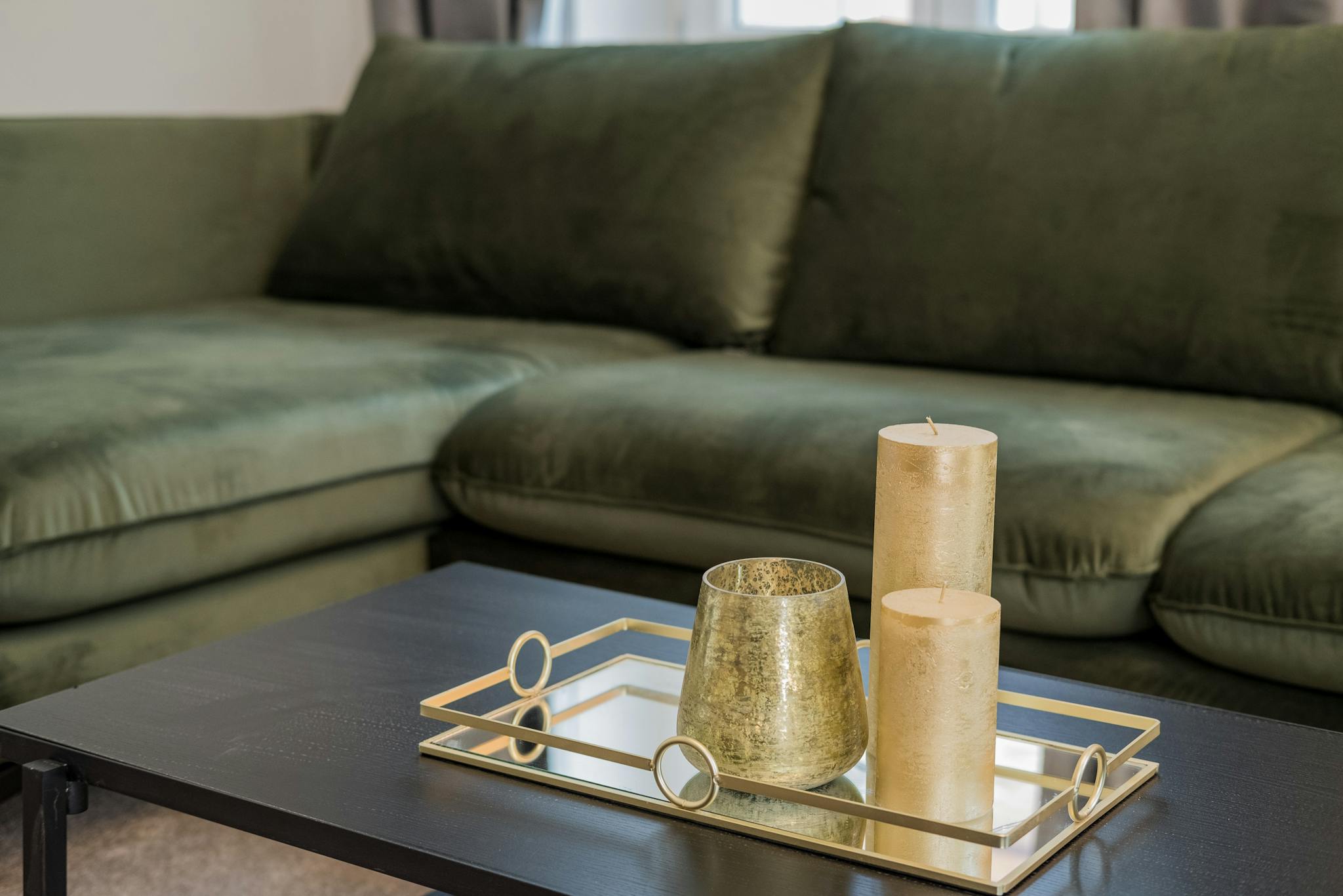 After work, you can relax on the beautiful couch and enjoy a movie on the large flat screen.