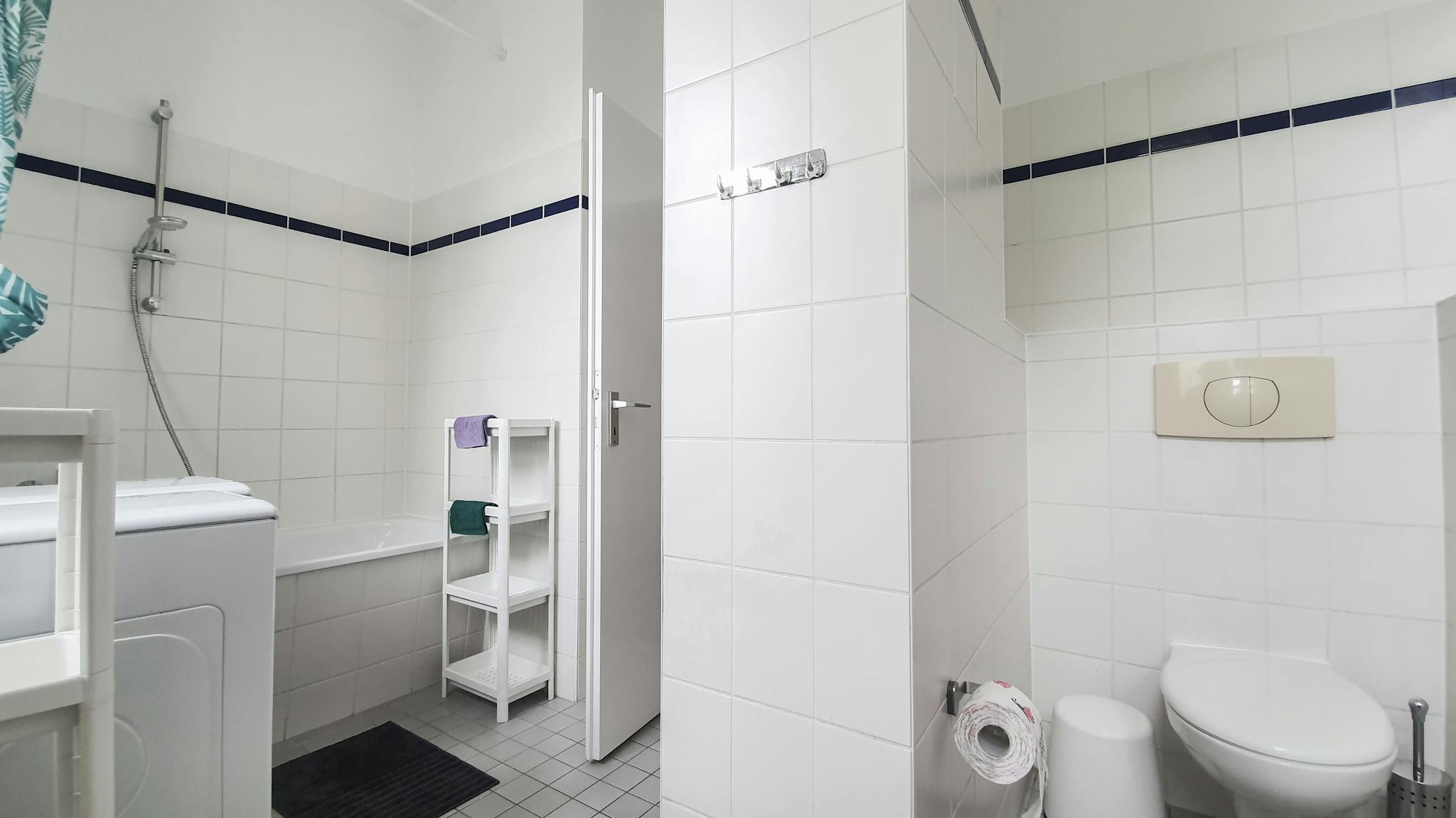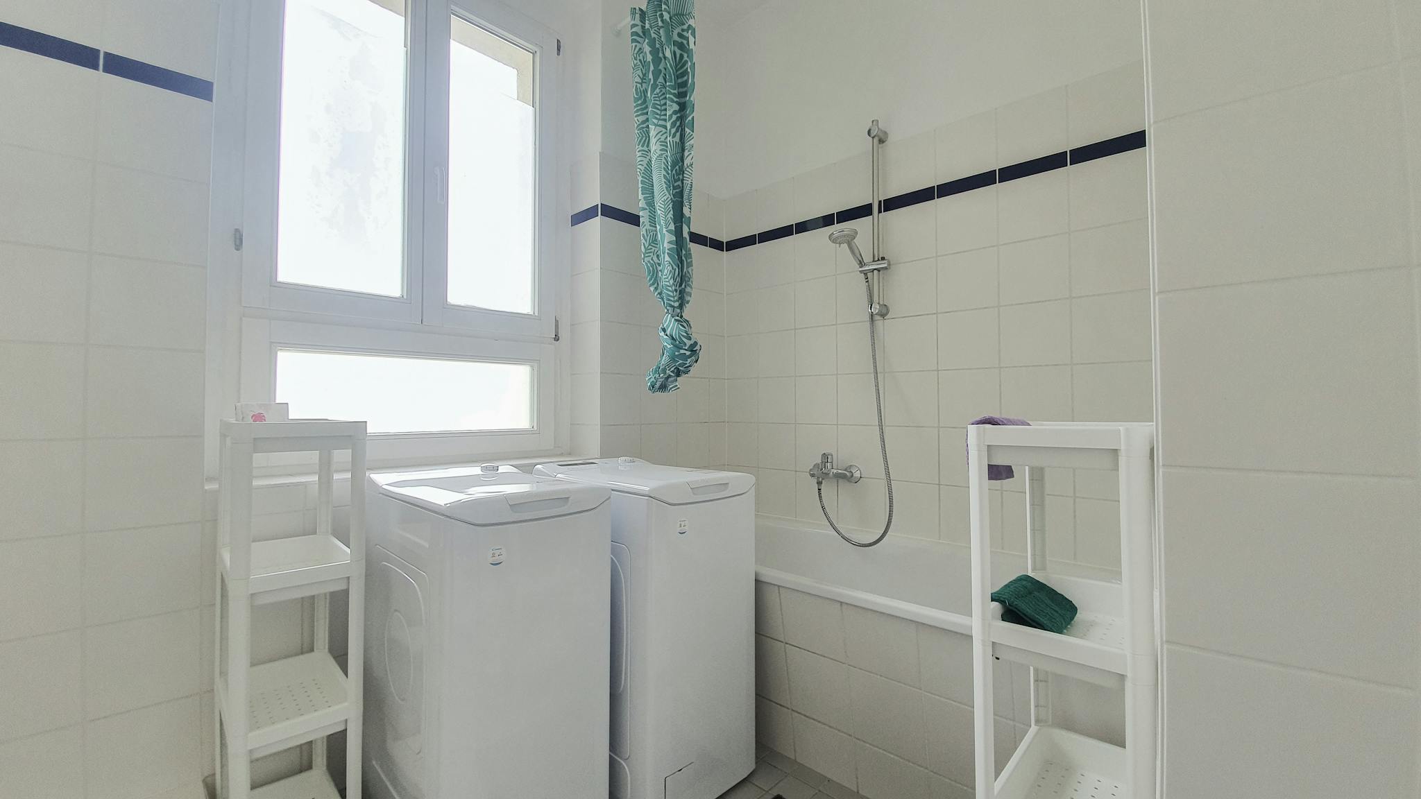 Shared areas include a washing machine, kitchen equipment, and all daily essentials.