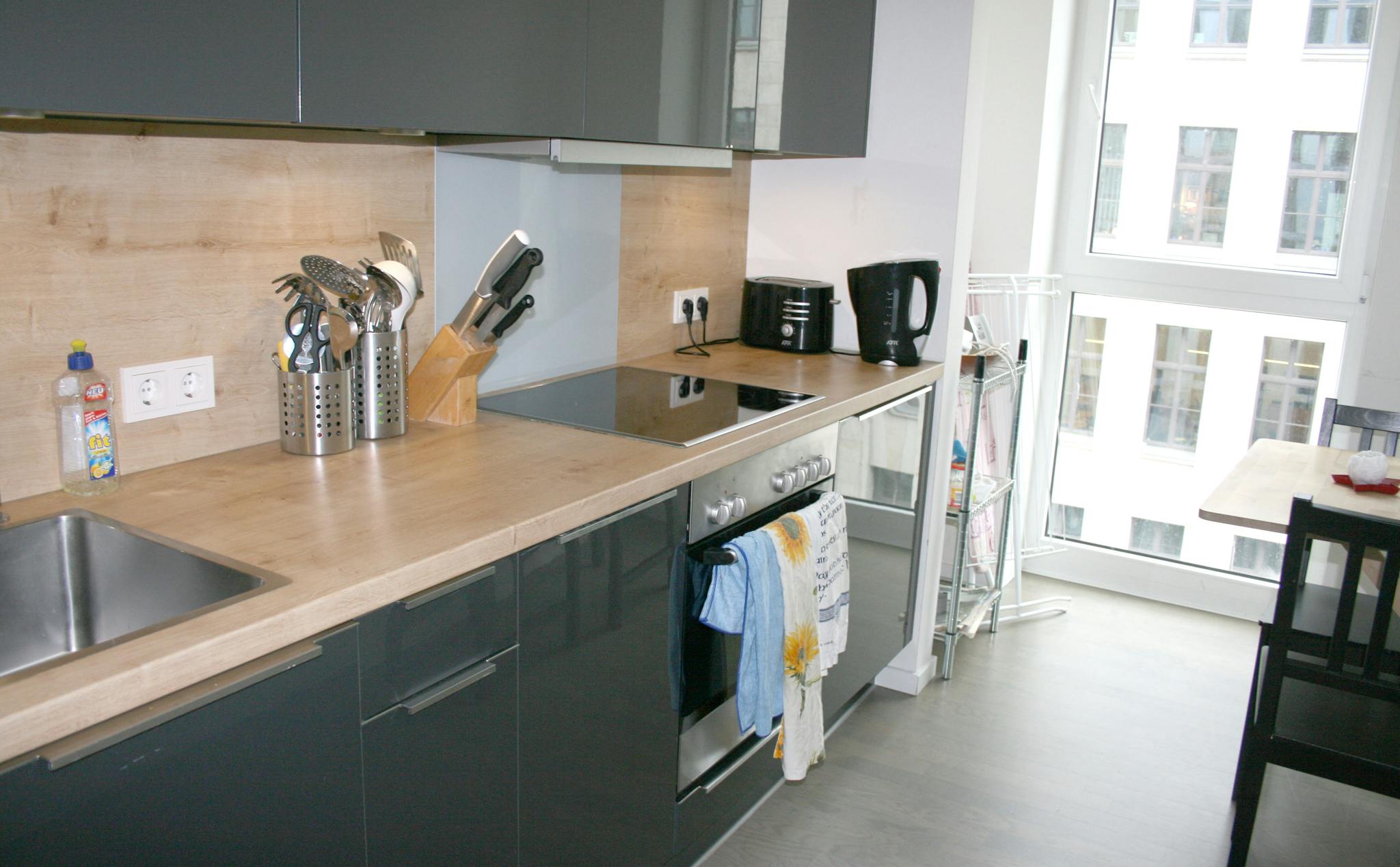 Our flats fulfil all your daily living requirements. Every flat comes readily equipped with a kitchen, including refrigerator, cooking equipment and dishes. Flats also include a washing machine and Wi-Fi Internet. Each room is fully furnished and offers a comfortable bed with fresh linen and a workspace. The area provides you with several shopping opportunities and excellent connections to public transport.