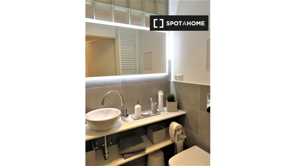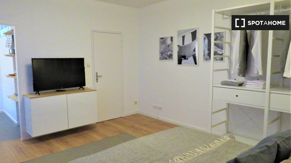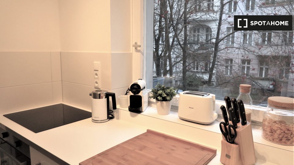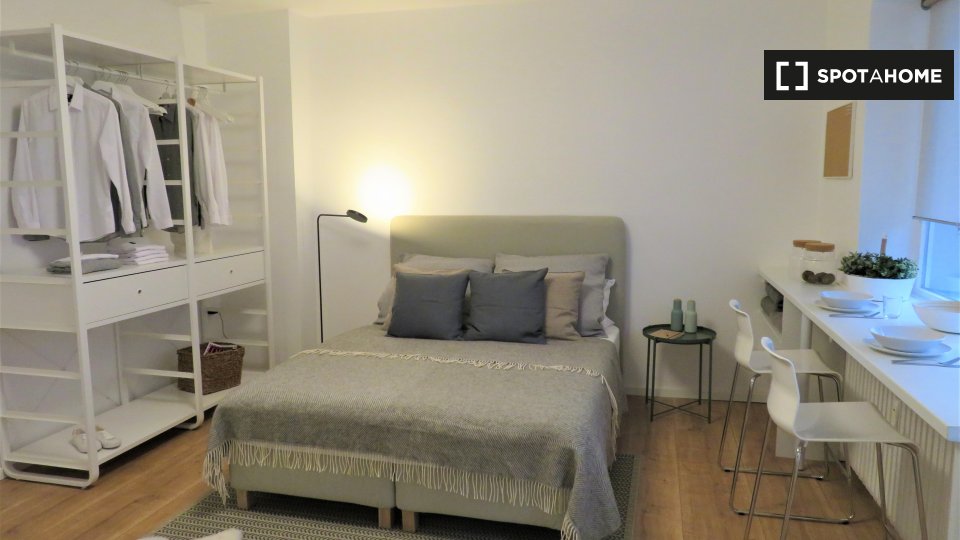 Pets not allowedNot allowedThis studio in Berlin is fully furnished and equipped with an air conditioner and heating system. Ideal for professionals, students, and couples, the studio offers a balcony/terrace, a private washing machine, and an equipped kitchen with an oven and a TV available. Bills for electricity, water, gas, and WiFi are included.
