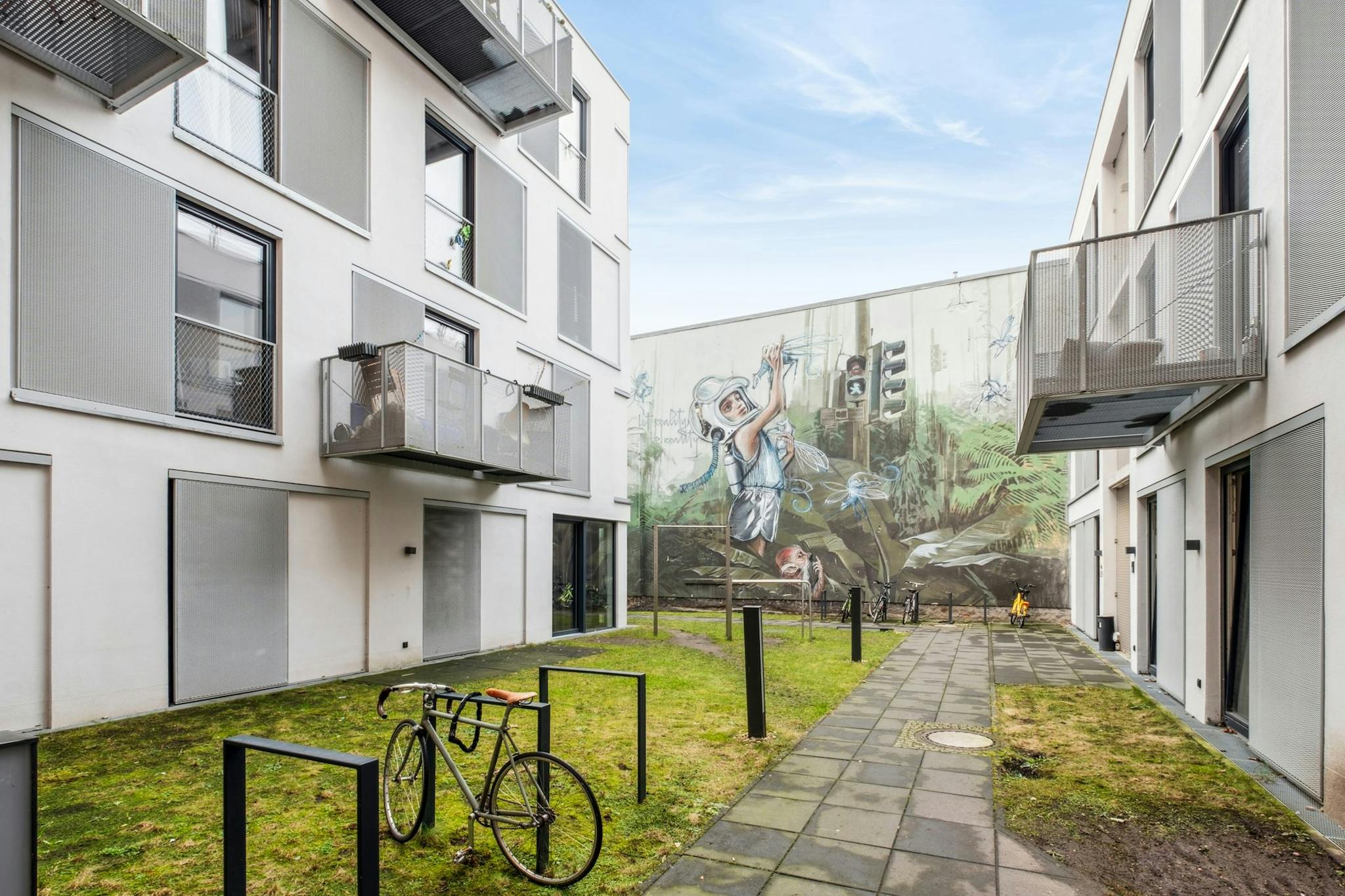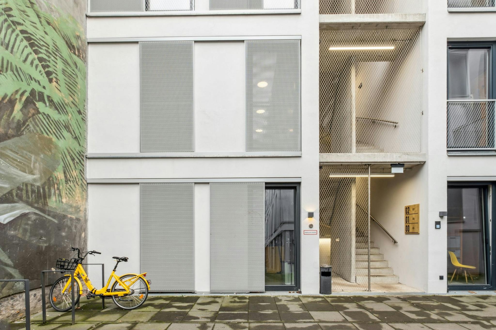 Located in a quite backyard in Wedding, this is your ideal home to explore all the hidden gems the city has to offer. The building has a big community room with a co-working area and lots of space to hang out in. The backyard entails bike stands, lots of greenery to enjoy and one of Berlin’s coolest murals. To keep things clean and tidy, you can directly use the in-house laundry facilities.