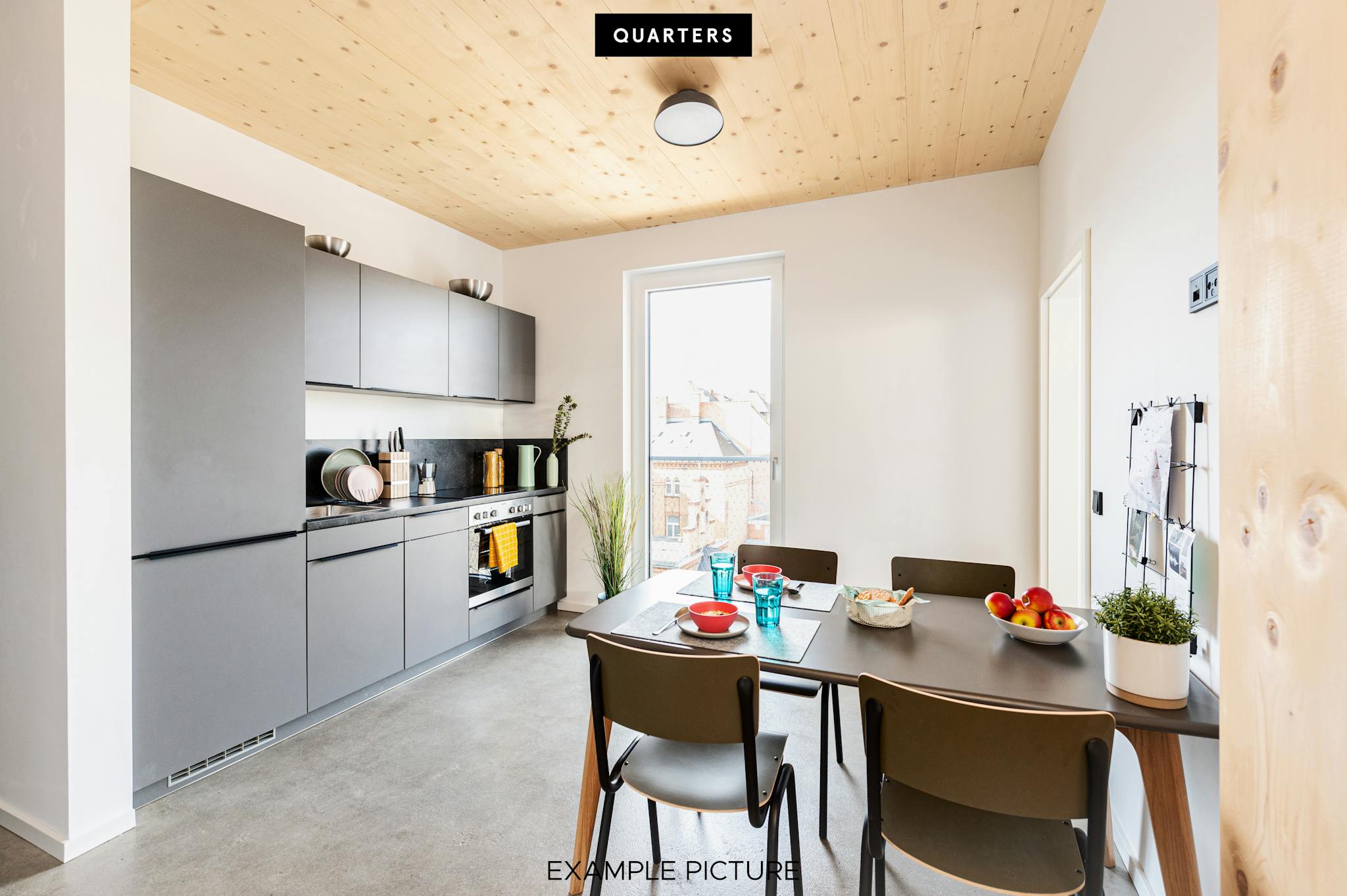 Our rooms come fully furnished with everything you need such as a custom-made wardrobe and bed frame including a comfy premium mattress. Depending on size you’ll also have a nightstand and desk in there. If you want to work on that tan, you can get one of the rooms with a private or shared balcony or rooftop terrace overlooking the stunning backyards of the district.