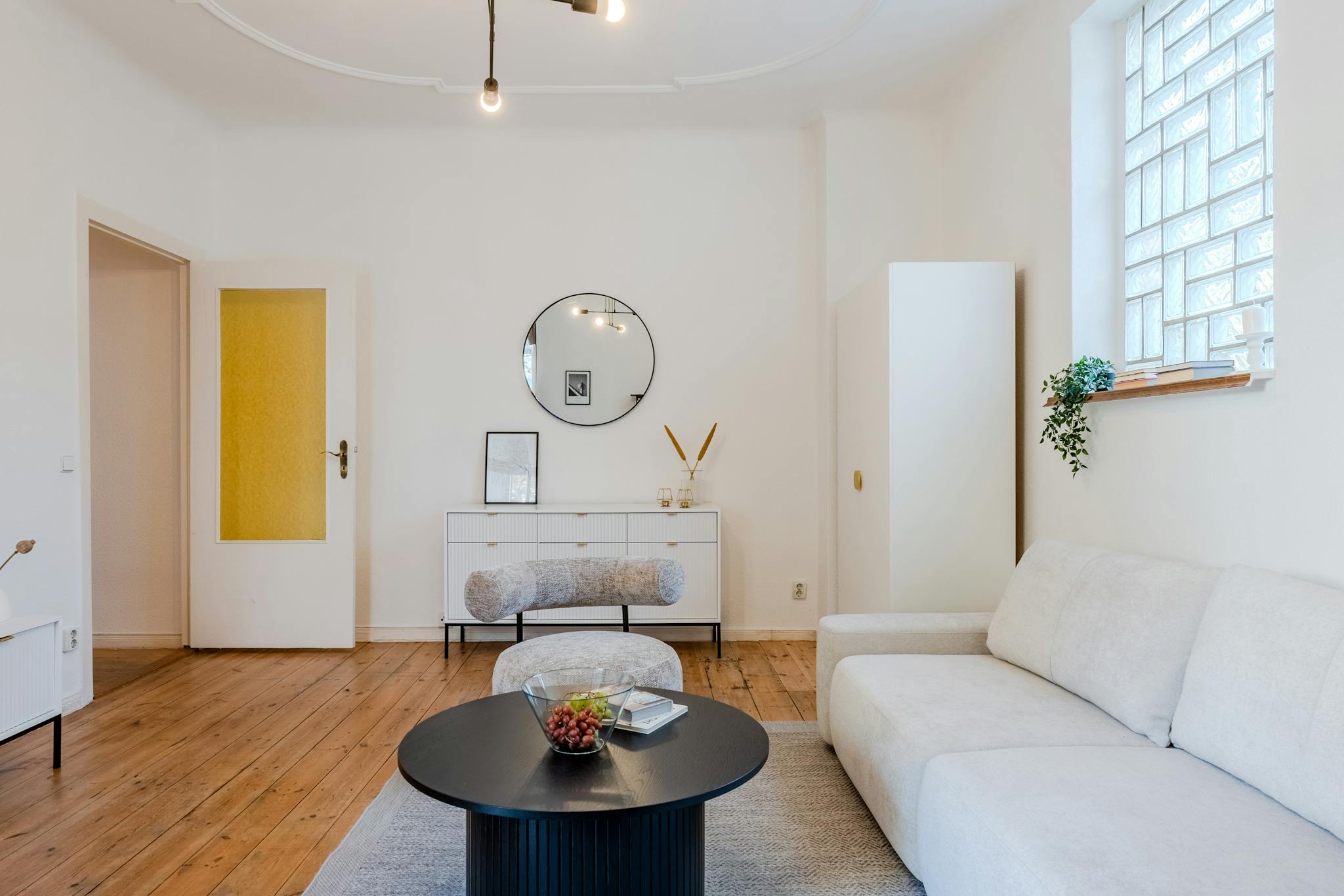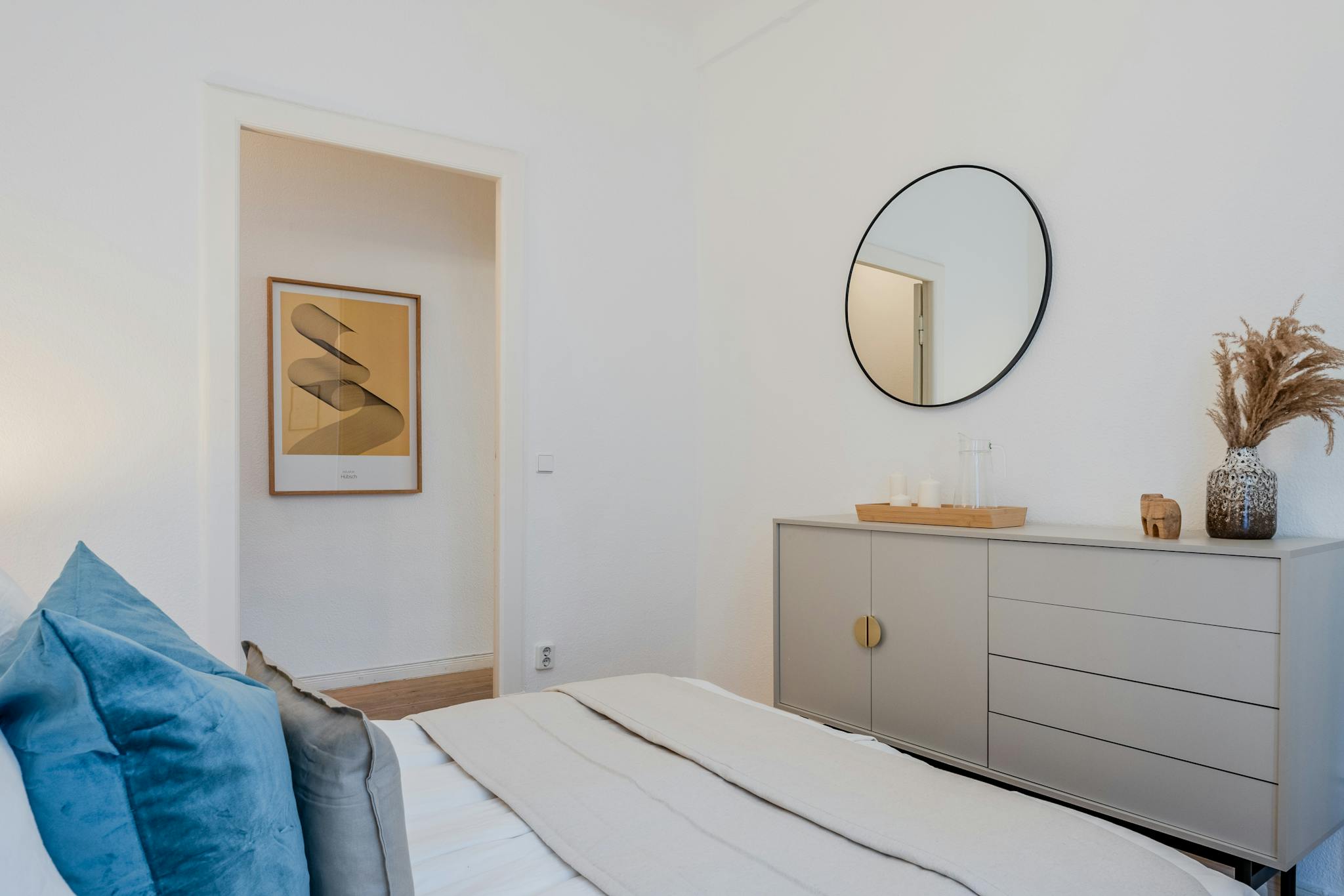 The entrance hall is thoughtfully arranged with a designated area for personal belongings, keeping the rest of the apartment uncluttered and organized. With its well-thought-out design, every corner of this 55 m2 space is optimized for comfort and convenience.