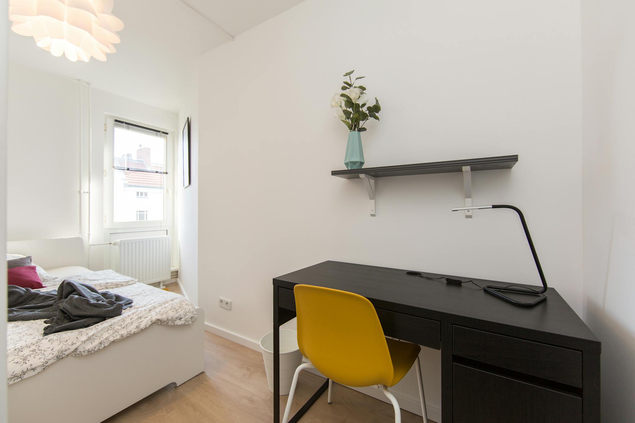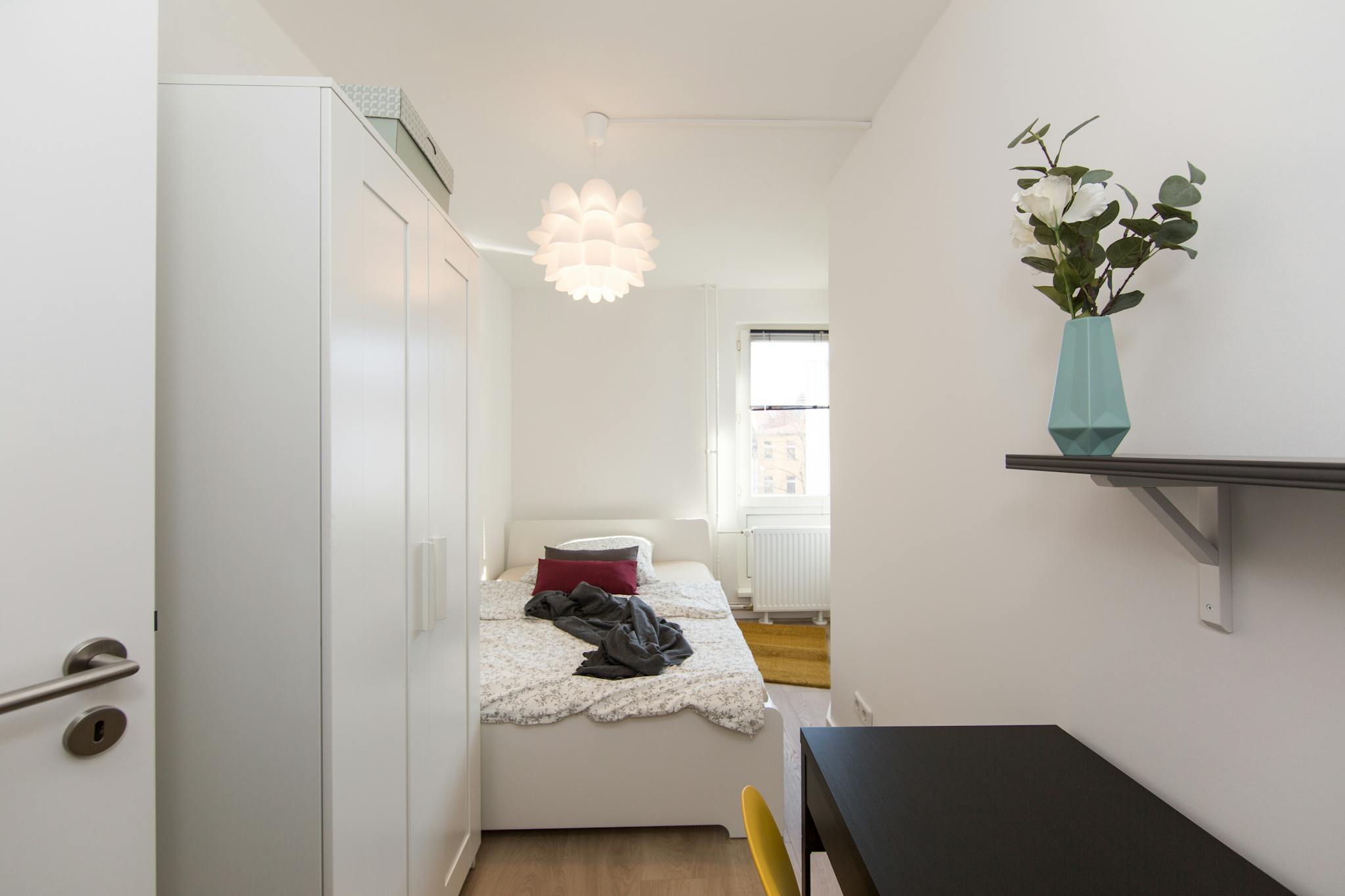 We’re excited to offer a bright and fully furnished room (Room 3) in a shared apartment on the fifth floor. The room is equipped with a comfortable bed, desk, chair, and wardrobe – ideal for studying, working, or simply relaxing.
