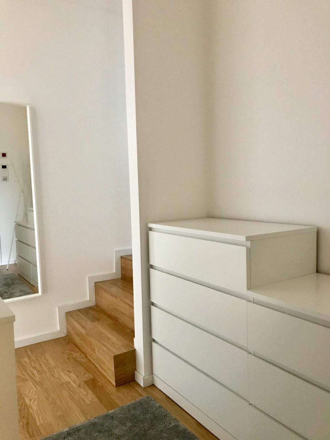 The cozy apartment offers accommodation for 2 persons. The wooden flooring gives the apartment a comfortable sense of well-being. A table in the living room has place for 4 persons and offers additional relaxing space. The service hatch to the living room from the fully equipped cuisine which comes with a dishwasher, a Nespresso coffee machine, a ceramic stove and an oven offers an open kitchen character. The double bed in the bedroom presents a high-quality comfortable mattress. The washing machine is located in the bathroom. The apartment offers high speed DSL with wireless LAN.