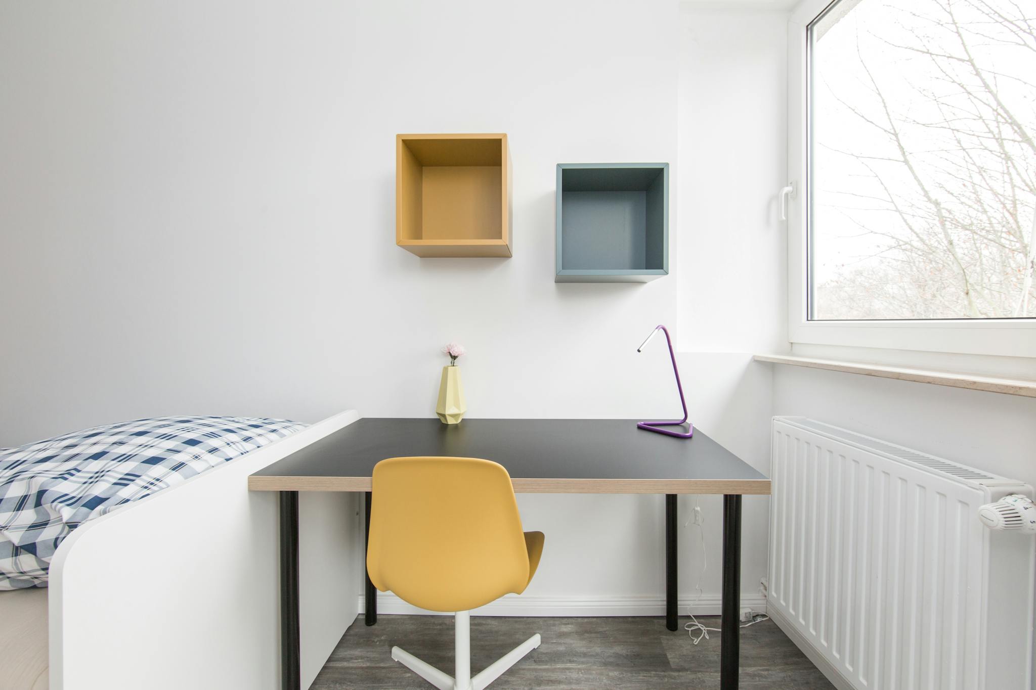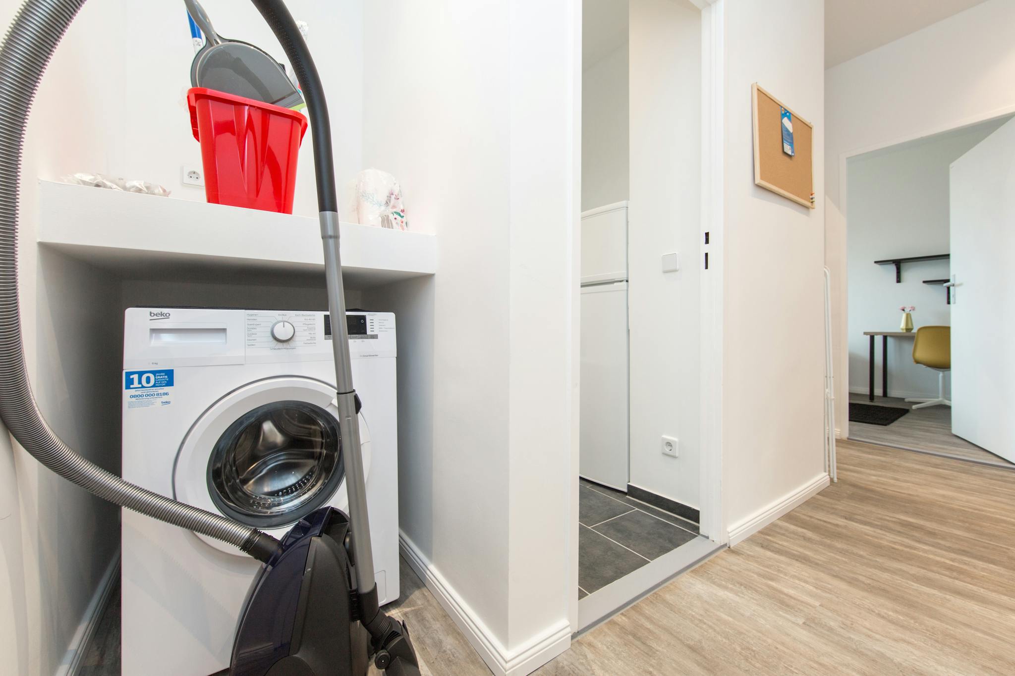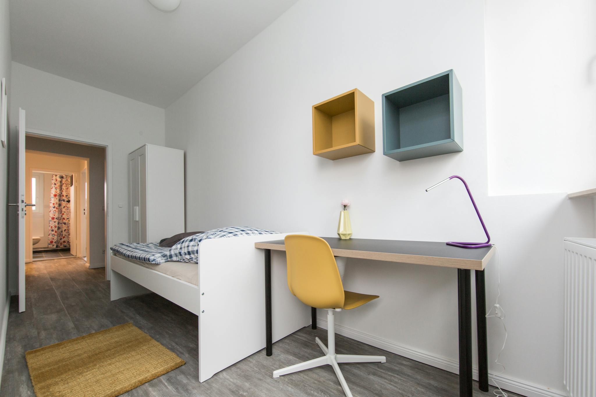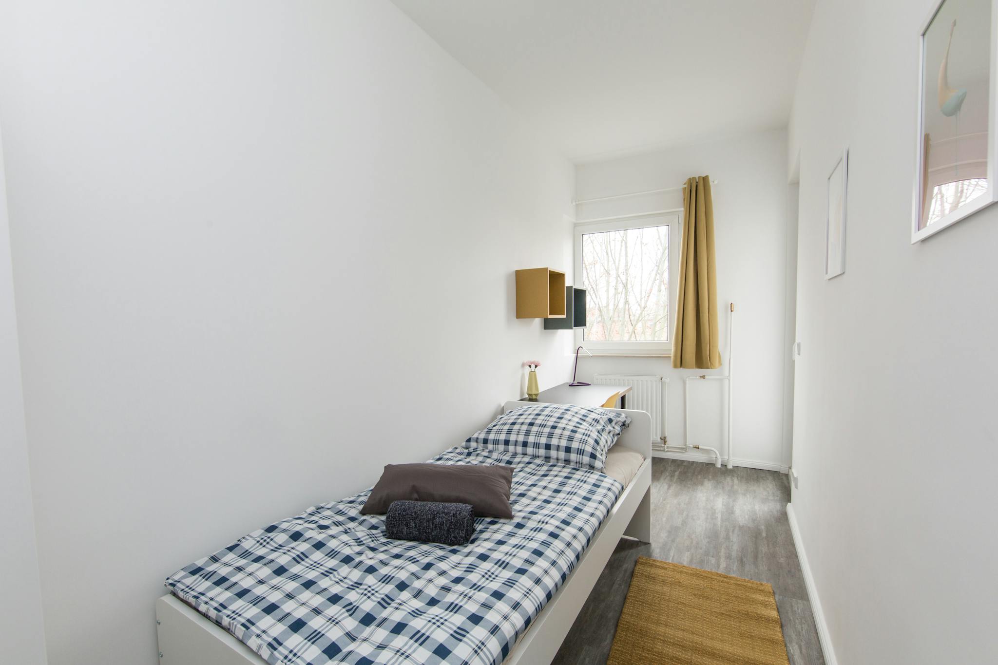 this is a fully furnished room in a shared flat. The room has a comfortable bed, a desk with chair and a wardrobe for your clothes. Also the common areas are fully equipped with washing machine, cooking equipment and all you need for your daily living.