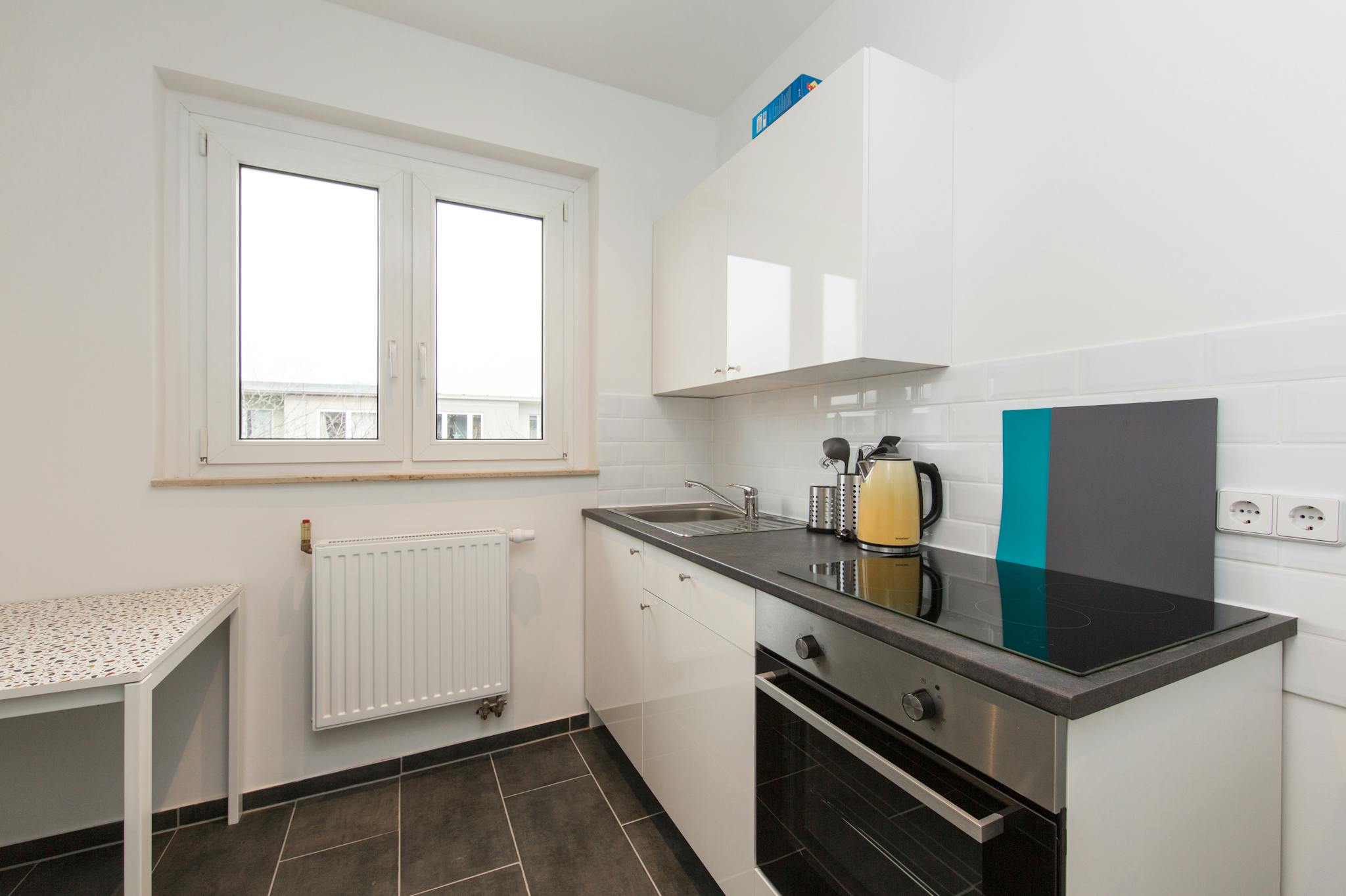 The monthly rent price is all inclusive (rent + heating + water + Internet + GEZ/german TV license fee).