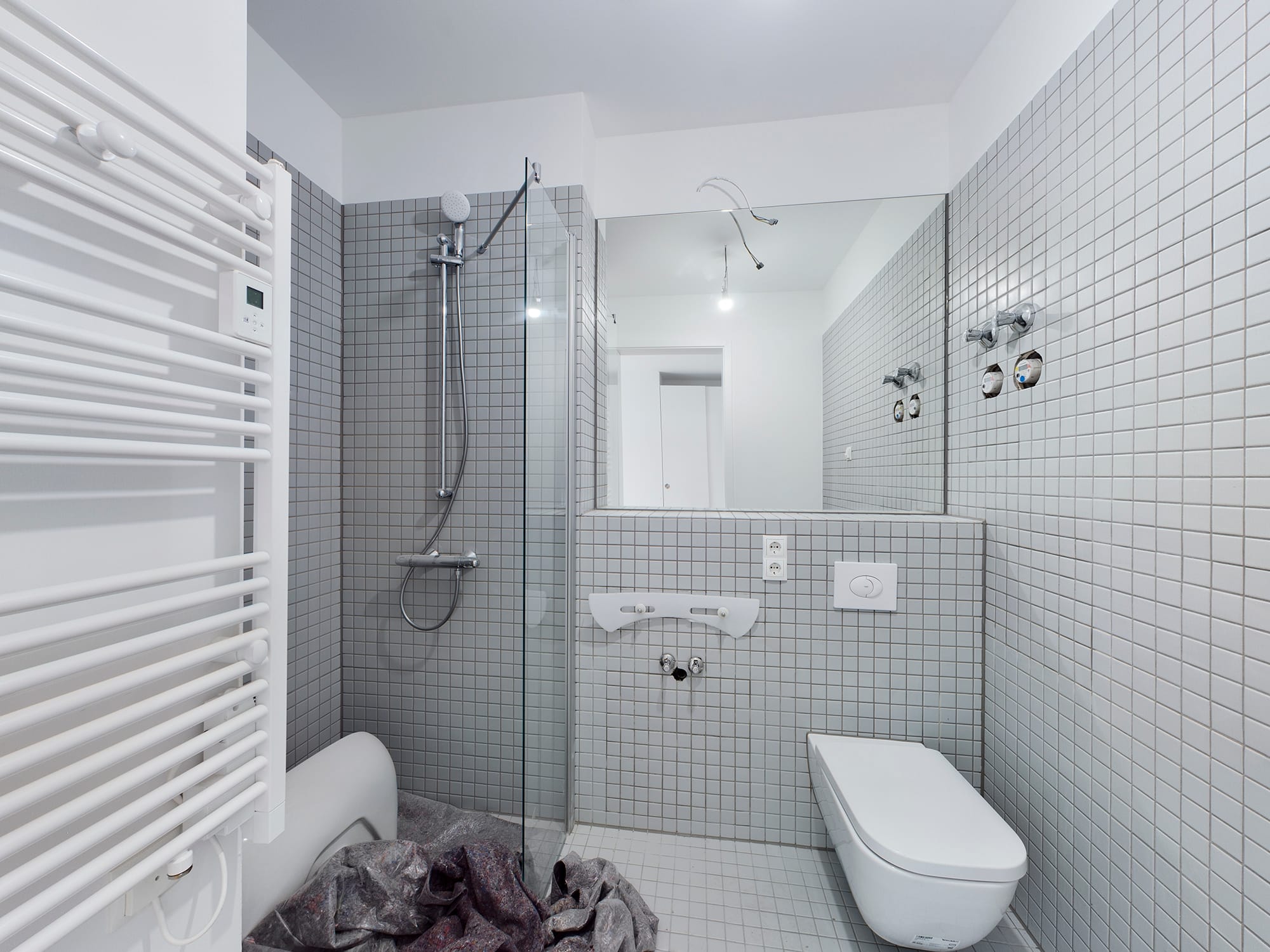 The studio kitchens offer everything you need in everyday life: a built-in microwave with grill function, an undermounted refrigerator, a small induction hob, stainless steel fittings, a quartz stone worktop, LED lighting and optimally planned upperboards with many storage options for crockery, cutlery and kitchen utensils. A full bathroom is also integrated into every flat. With brand name bathroom furnishings, towel radiators and a state-of-the-art ventilation system.
