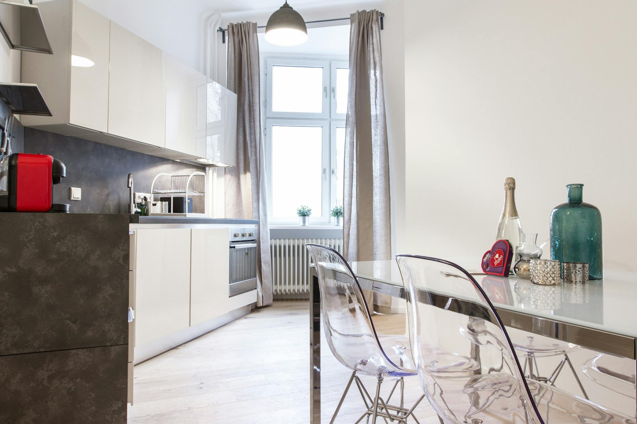 The apartment is located in the up-and-coming area of Berlin – the Wedding district, in the borough of Mitte. The Wedding district is home to many students and artists.