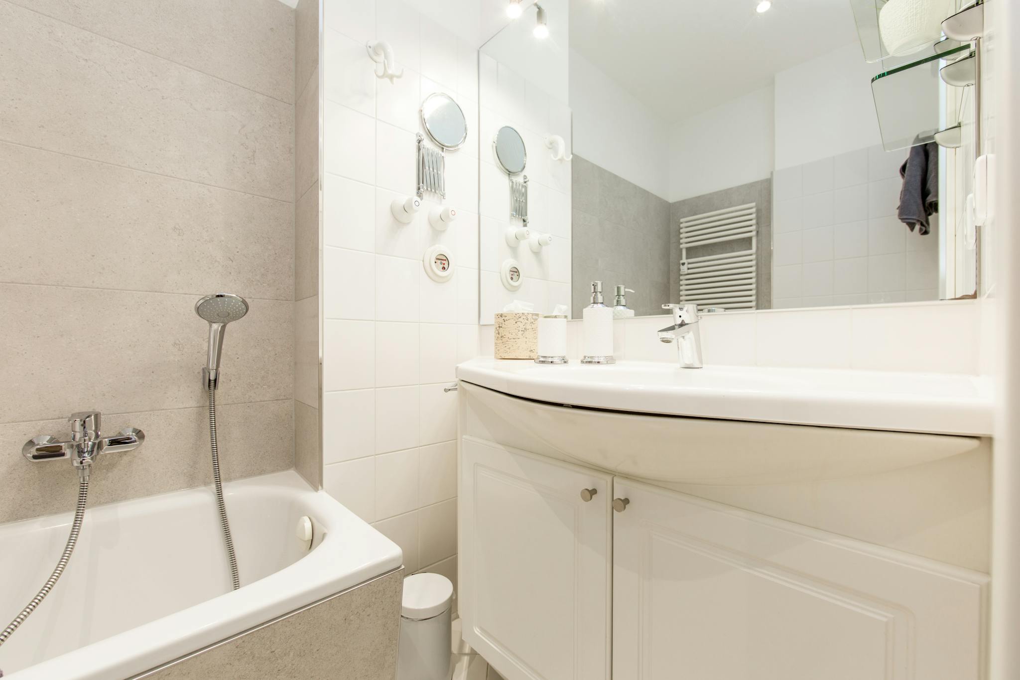 Beautiful, bright, fully equipped flat (3rd Floor) in sought-after Prenzlauer Berg. Perfectly furnished: double bed (140x200), wall unit, sitting area, workspace, open kitchen with washer-dryer, cooker, oven, dishwasher, fridge/freezer, etc. Bathroom with tub, hallway with shoe cupboard and wardrobe. The rent also includes a monthly cleaning, GEZ Fee, WiFi ,all usual costs and a concierge service. Only the electricity costs are charged extra all 3 months on your personal consumption. The apartment is perfect for one person.