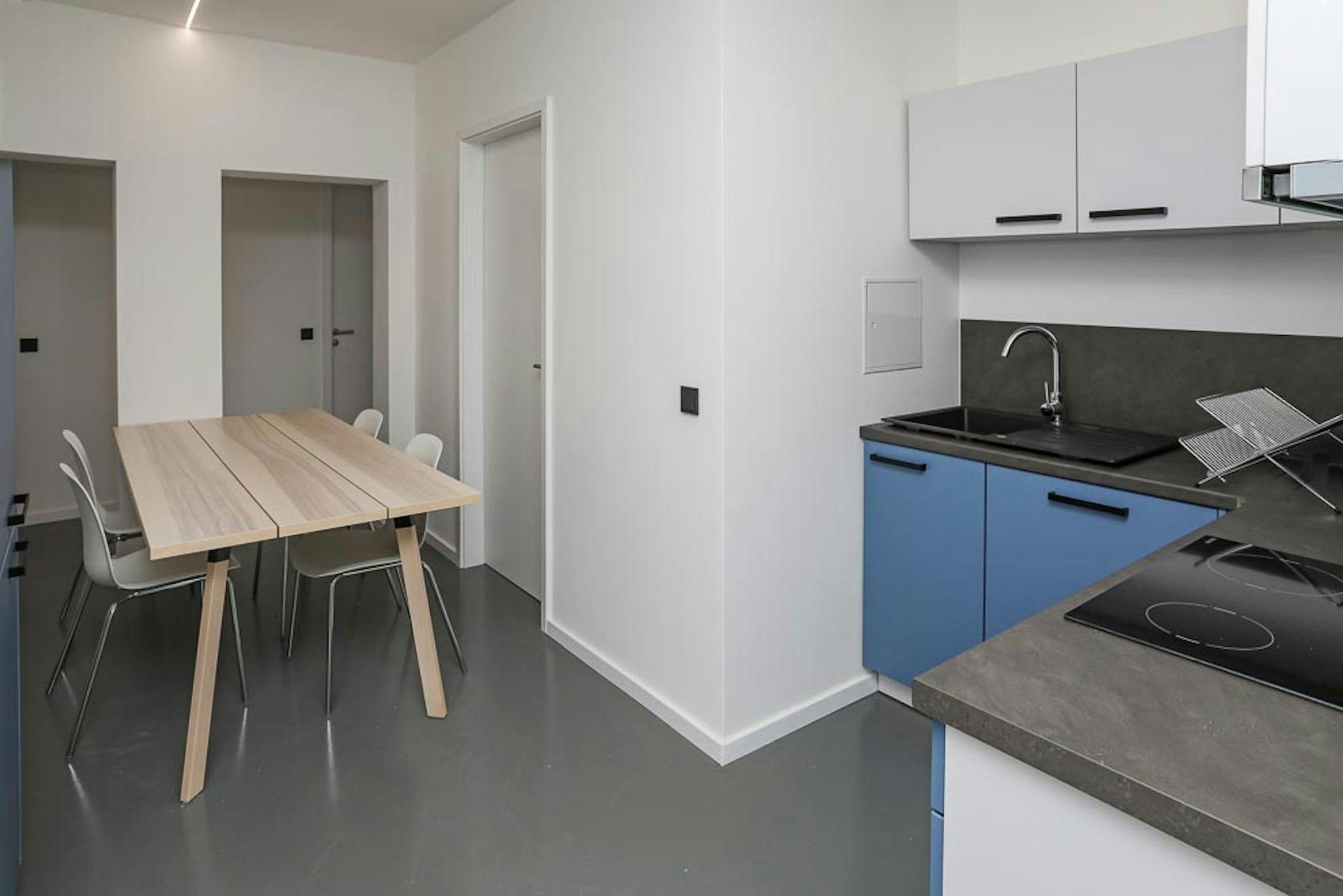 Our flats fulfil all your daily living requirements. Every flat comes readily equipped with a kitchen, including refrigerator, cooking equipment and dishes. Flats also include a washing machine and Wi-Fi Internet. Each room is fully furnished and offers a comfortable bed with fresh linen and a workspace. The area provides you with several shopping opportunities and excellent connections to public transport.