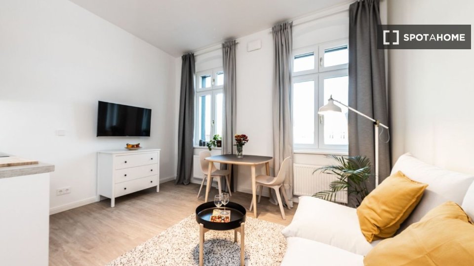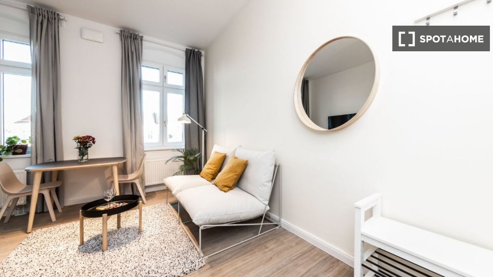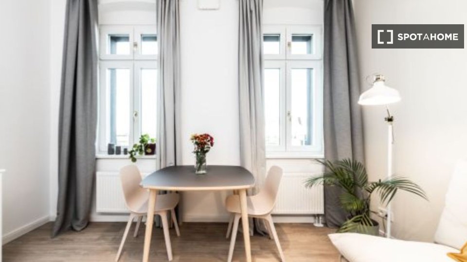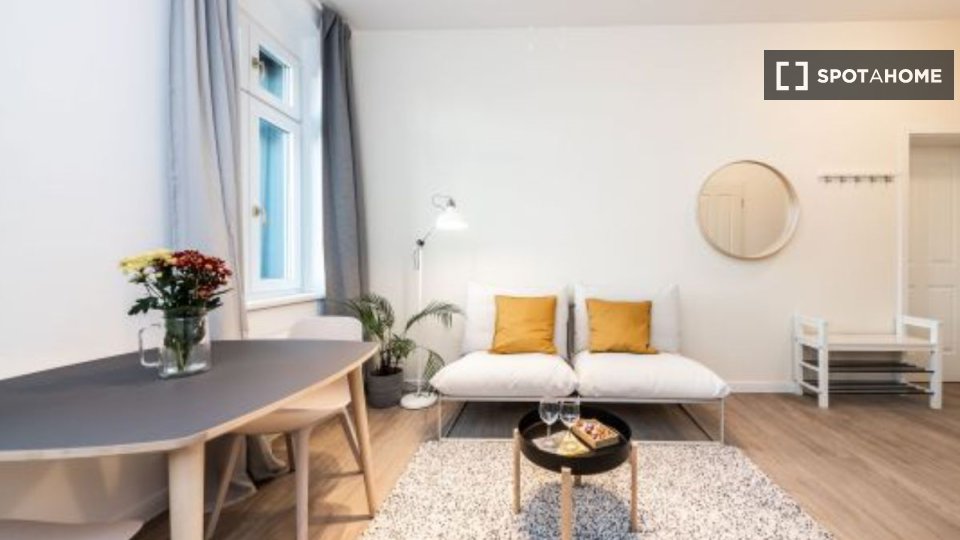 Pets allowedAllowedThis furnished studio apartment in Berlin is available for rent. It comes with a fully equipped kitchen and includes bills, offering convenience and comfort. The property welcomes professionals, students, and couples without restrictions. All Spotahome landlords go through a vetting process to ensure reliability.