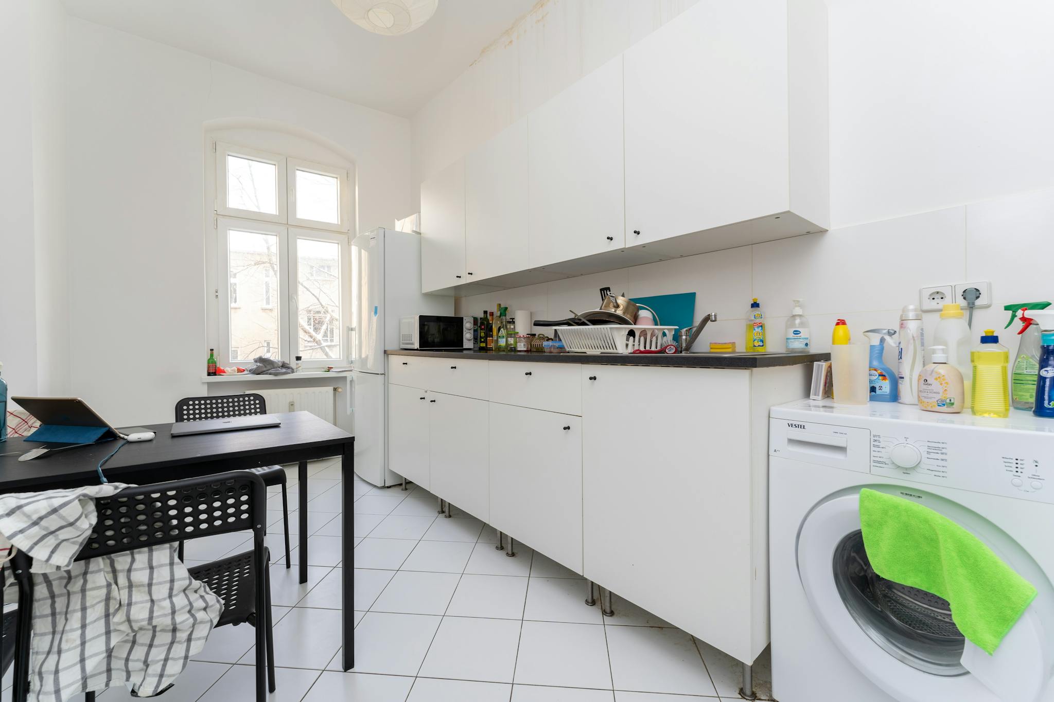 This beautifully modernized, fully furnished shared apartment 70 qm is located on the 3th floor and features high ceilings, wooden flooring, and a bright, welcoming atmosphere. It’s hard to find a more central and exciting location!