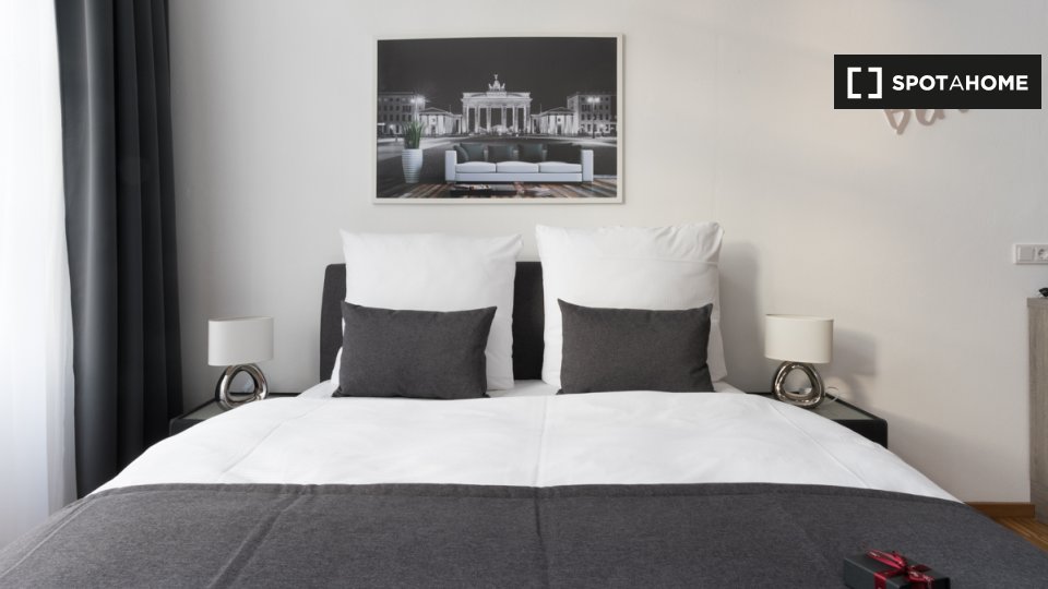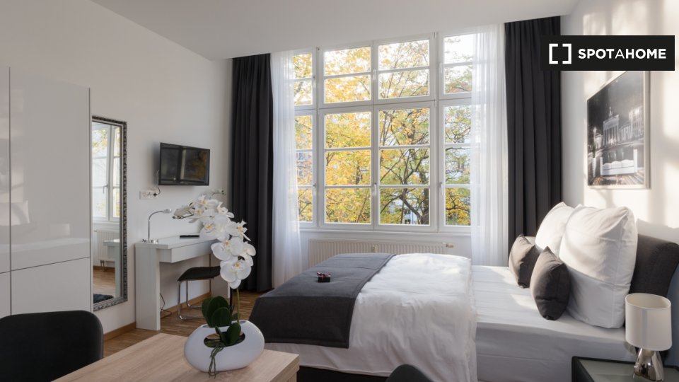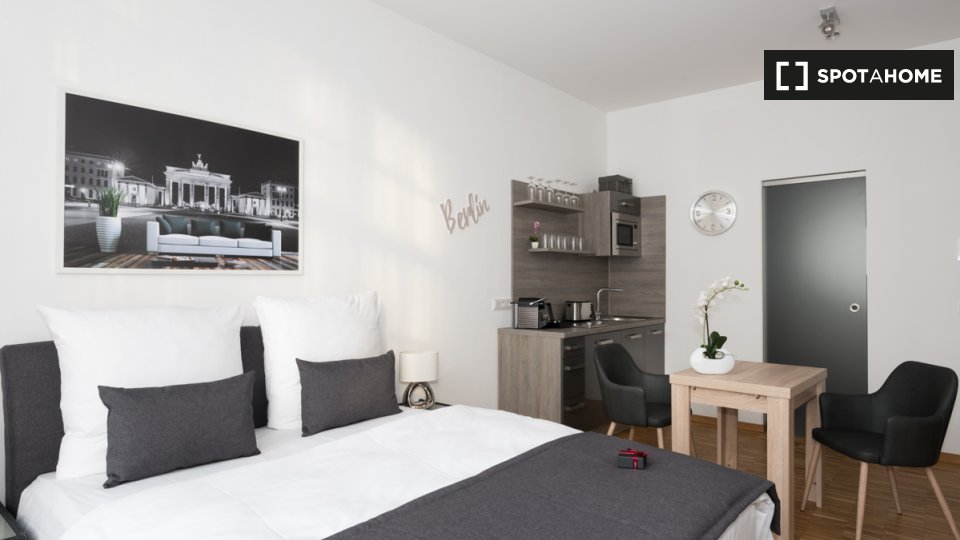 Pets not allowedNot allowedThis modern and fully furnished studio is available for rent in Berlin. The property includes essential features such as central heating, an equipped kitchen with a dishwasher, a TV, and all utilities included in the rent. Spotahome has personally checked this listing for your reliability and comfort.