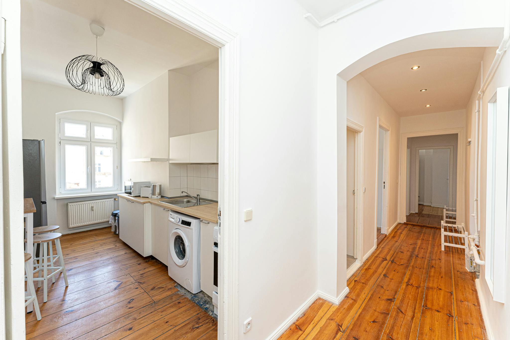 This beautifully modernized, fully furnished shared apartment 63 qm is located on the 4th floor and features high ceilings, wooden flooring, and a bright, welcoming atmosphere. It’s hard to find a more central and exciting location!