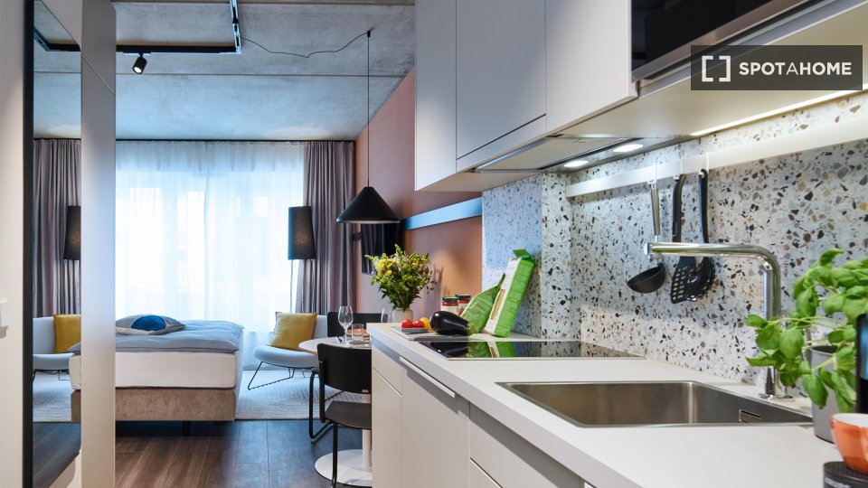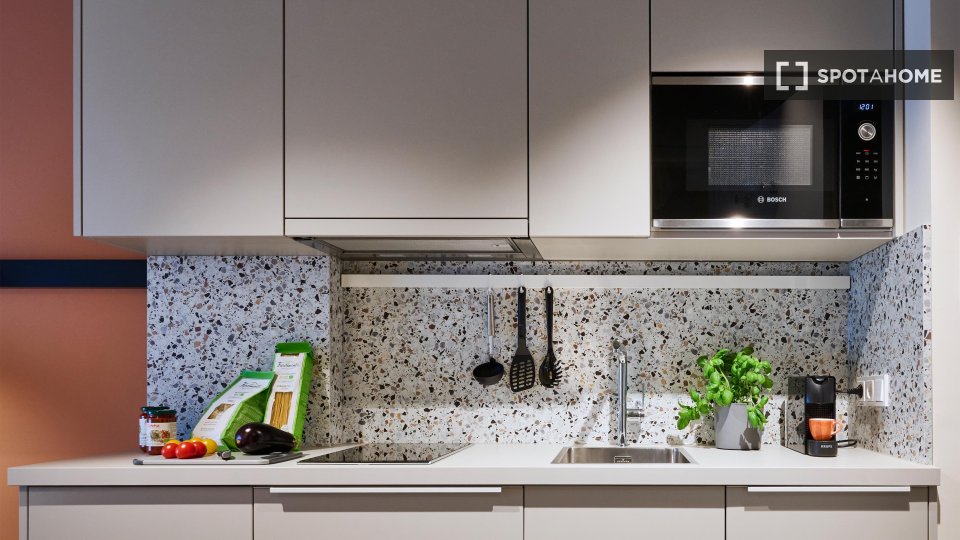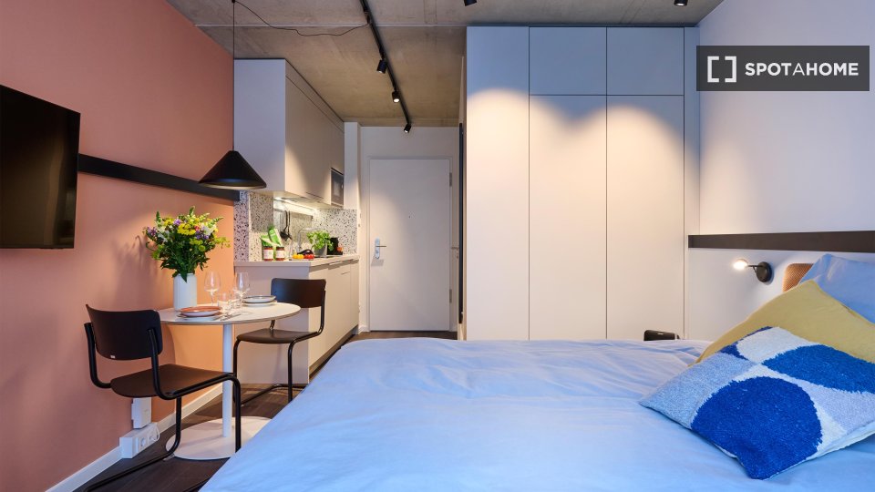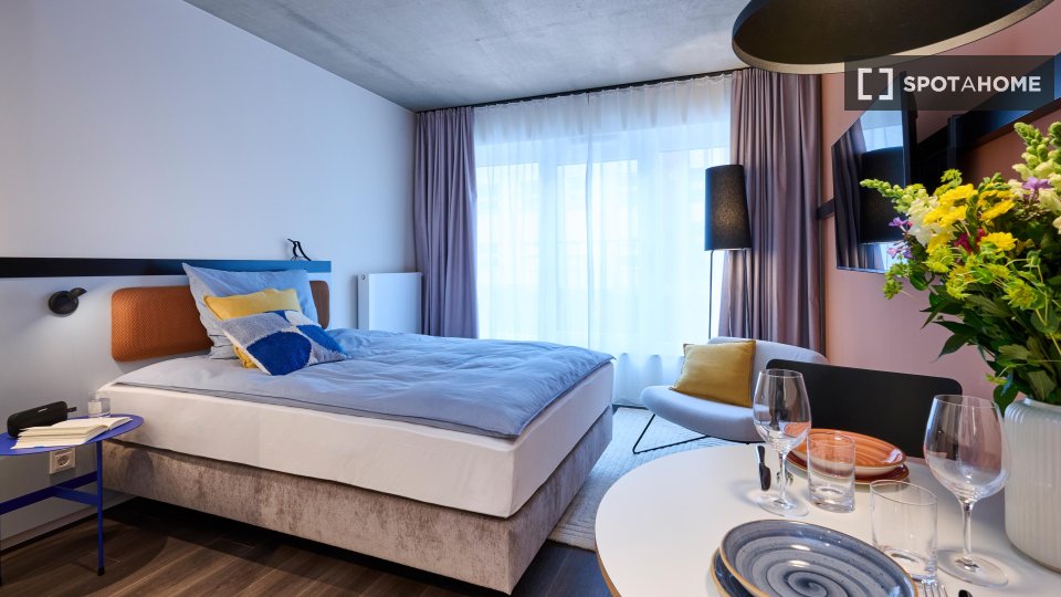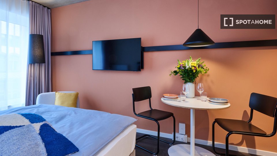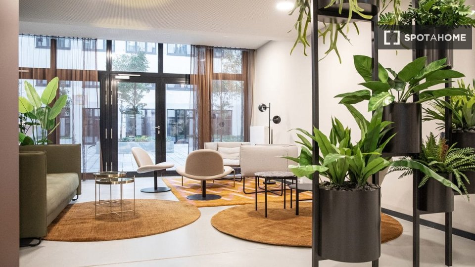 Located in the heart of Charlottenburg, this beautifully designed apartment offers a perfect blend of comfort, style, and community living. Each unit comes fully furnished and equipped with modern amenities, so you can move in with just your suitcase. Enjoy access to premium shared spaces like a coworking lounge, gym, kitchen, and rooftop terrace that elevate your everyday experience. With all-in rent, flexible check-in, and on-site support, living here is as effortless as it is enjoyable. The property welcomes pets and includes high-speed internet, making it ideal for professionals, digital nomads, and students alike. Beyond the apartment, an active community awaits — with regular social events, local partnerships, and city tours that help you connect and feel at home in Berlin from day one.