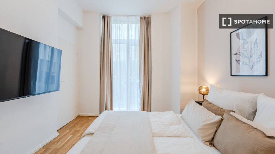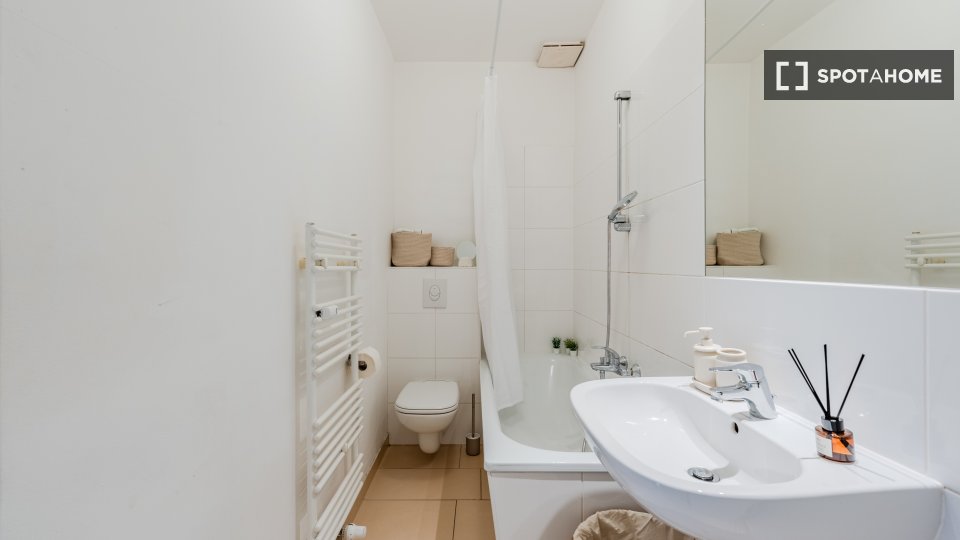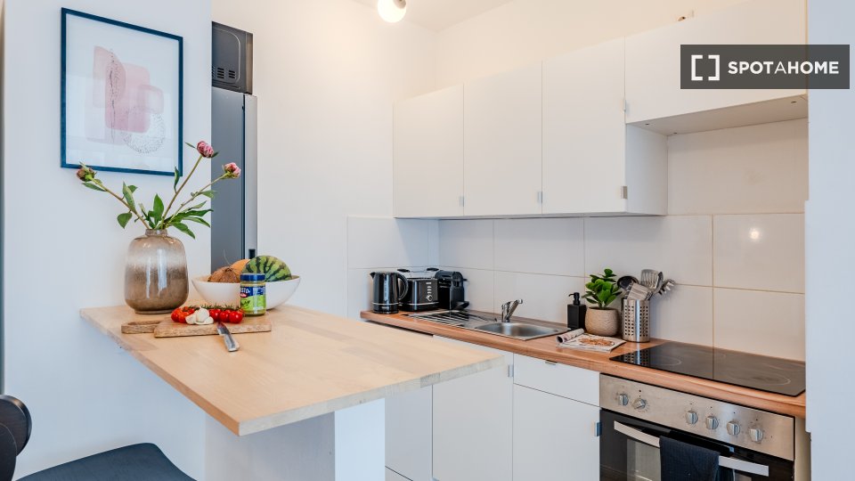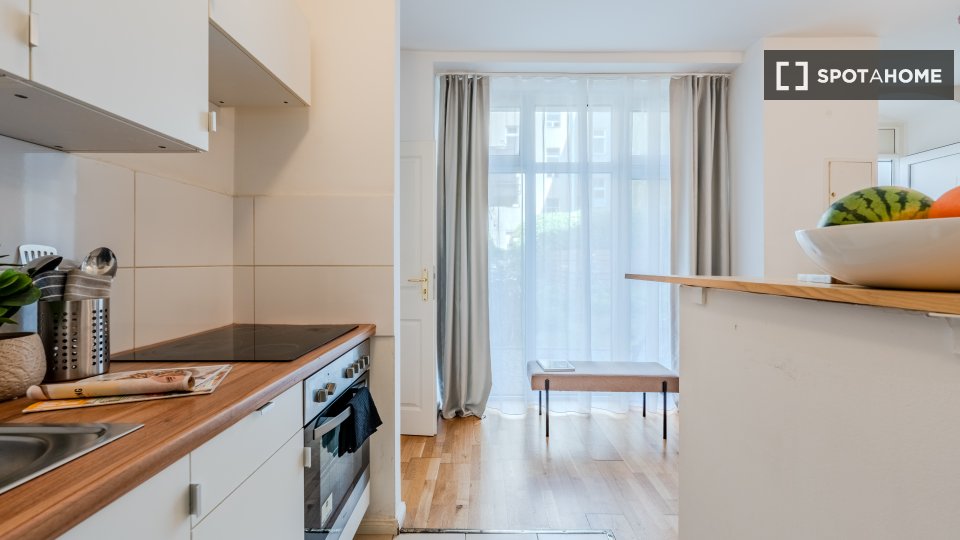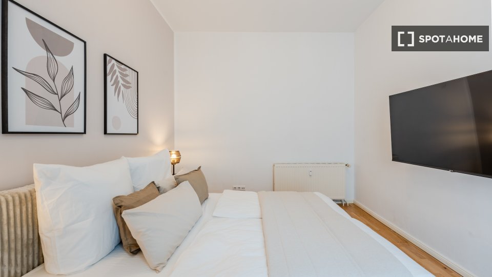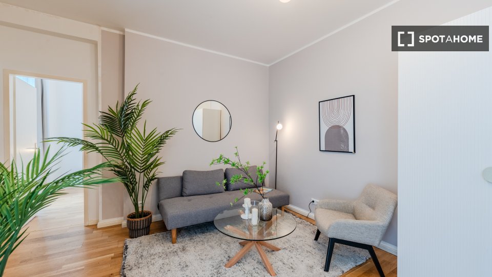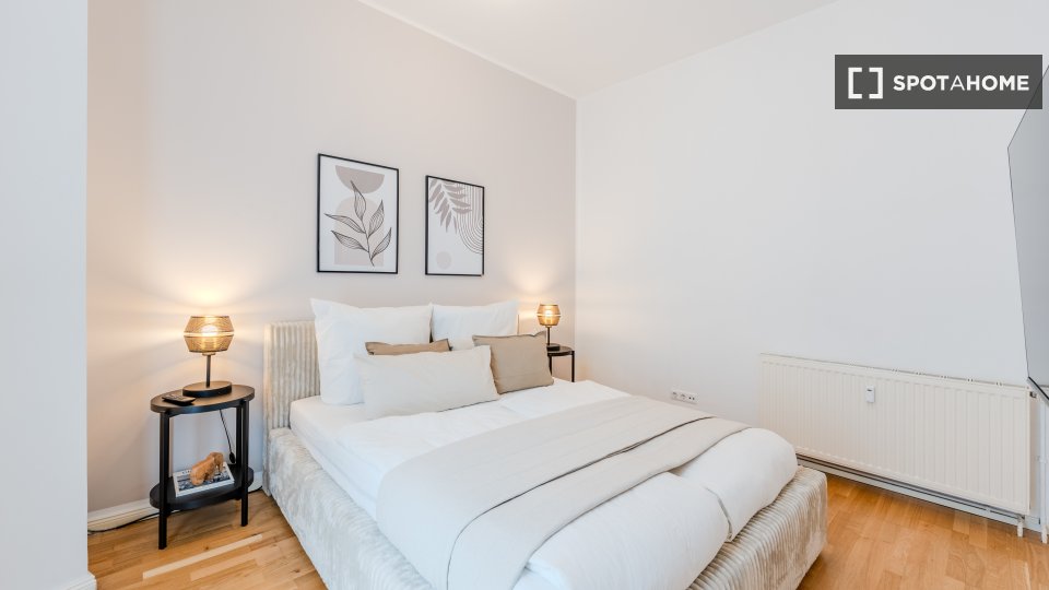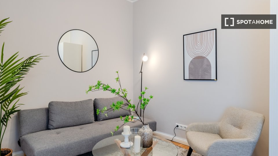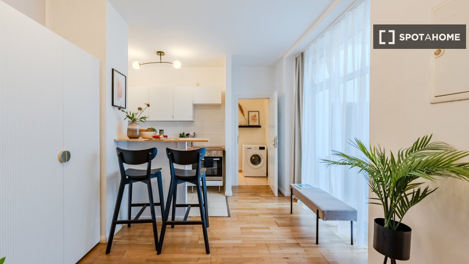 Pets allowedAllowedDiscover a charming 2-bedroom apartment in Berlin. This furnished dwelling is ideal for professionals, students, and couples seeking a comfortable home. The apartment features an equipped kitchen, a private washing machine, and allows pets with restrictions. All utilities are conveniently included, ensuring an easy transition to city living.