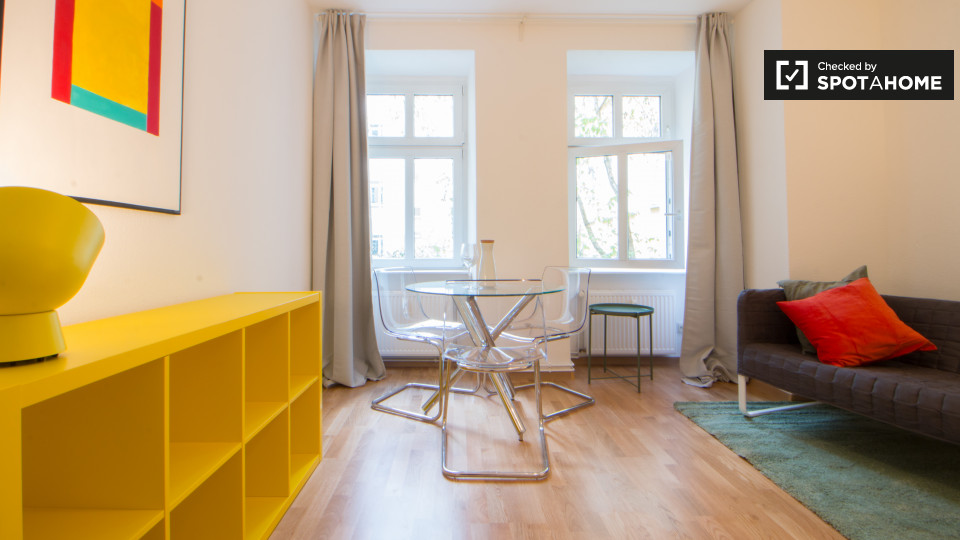 Pets not allowedNot allowedThis 1-bedroom apartment for rent in Prenzlauer Berg is 34m² and offers an equipped kitchen, modern bathroom and central heating. This apartment is stylish and modern, with great natural light, modern amenities and plenty of storage space.