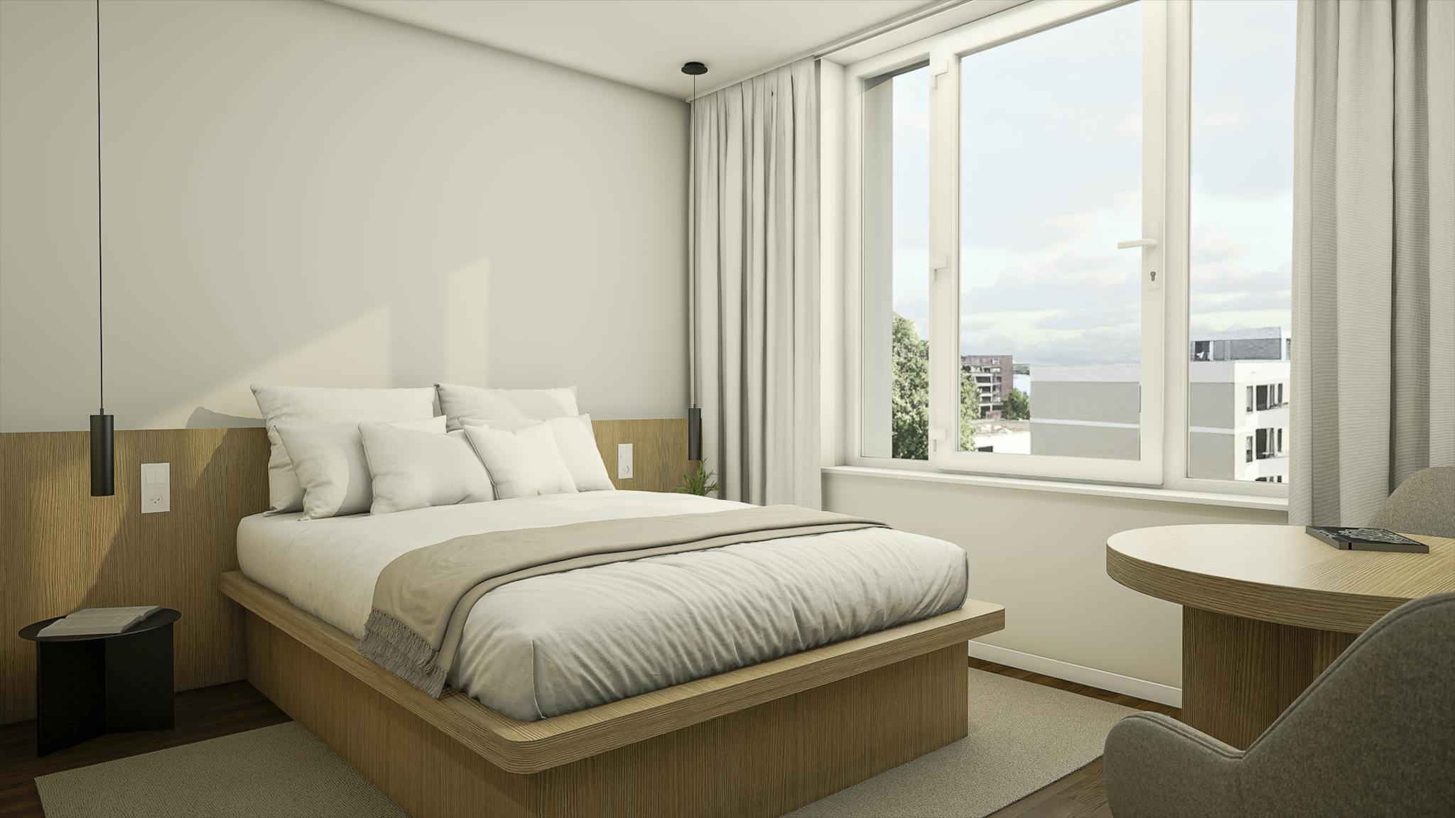 Combining the vibrancy of Berlin with natures serenity, the Waterfront was crafted with wood and raw textures, blending modern art and colorful accents. The property is purposefully built to be an ideal location for you to make the most of the co-living lifestyle, and be part of the (hidden) community. On the ground floor, tenants are invited to enjoy and exclusive and stylish community area featuring a smart television, comfortable sofas, meeting rooms, working areas, and a shared kitchen. The Waterfront also includes a welcoming Café for tenants and their guests, offering multiple menu options to start the day and tasteful snacks to enjoy whenever you want.